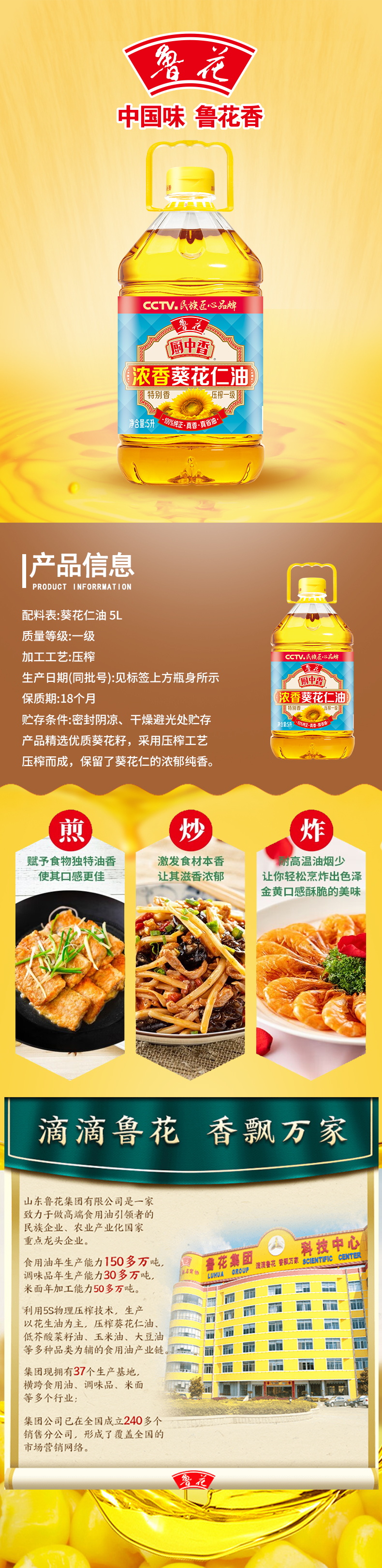 商品名称:【京东/顺丰配送】鲁花厨中香浓香葵花仁油5L