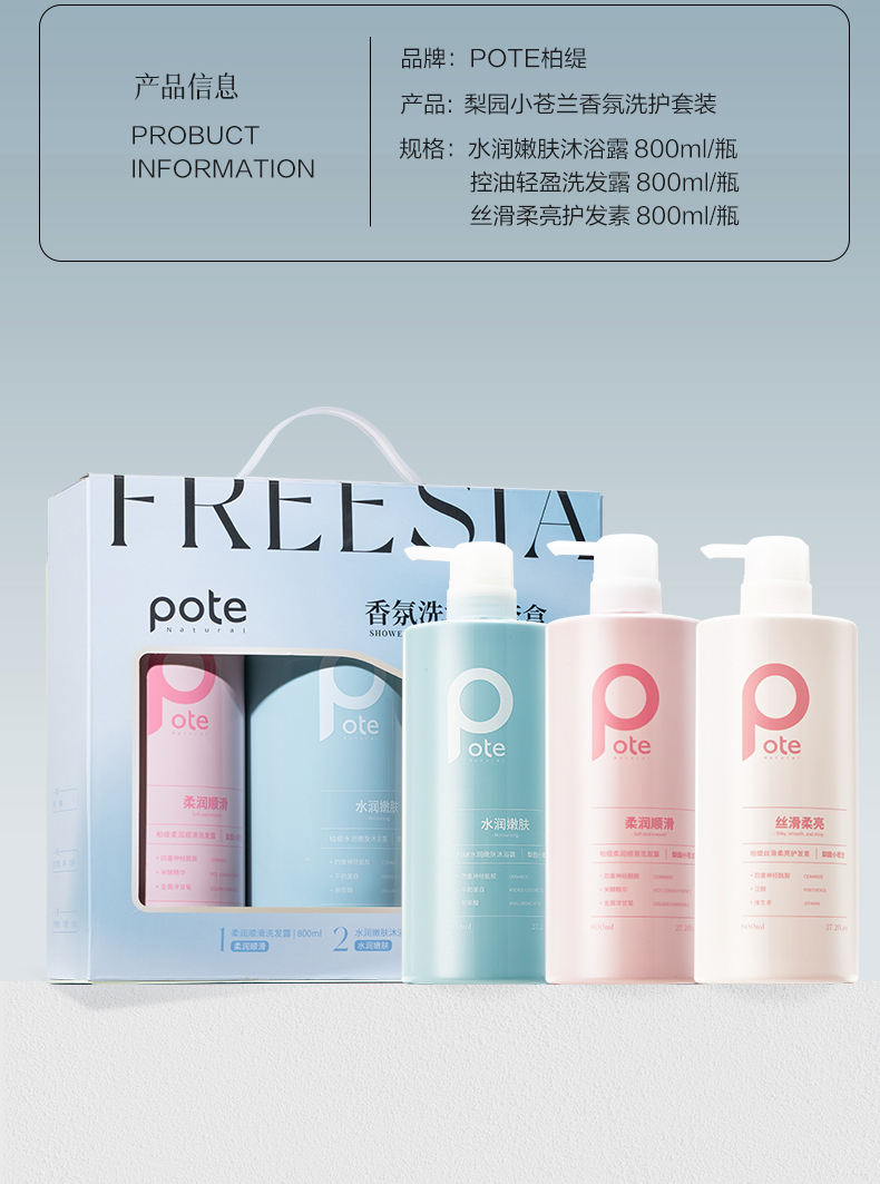 商品名称:【京东/顺丰配送】POTE/柏缇梨园小苍兰香氛洗沐护套装2400ml