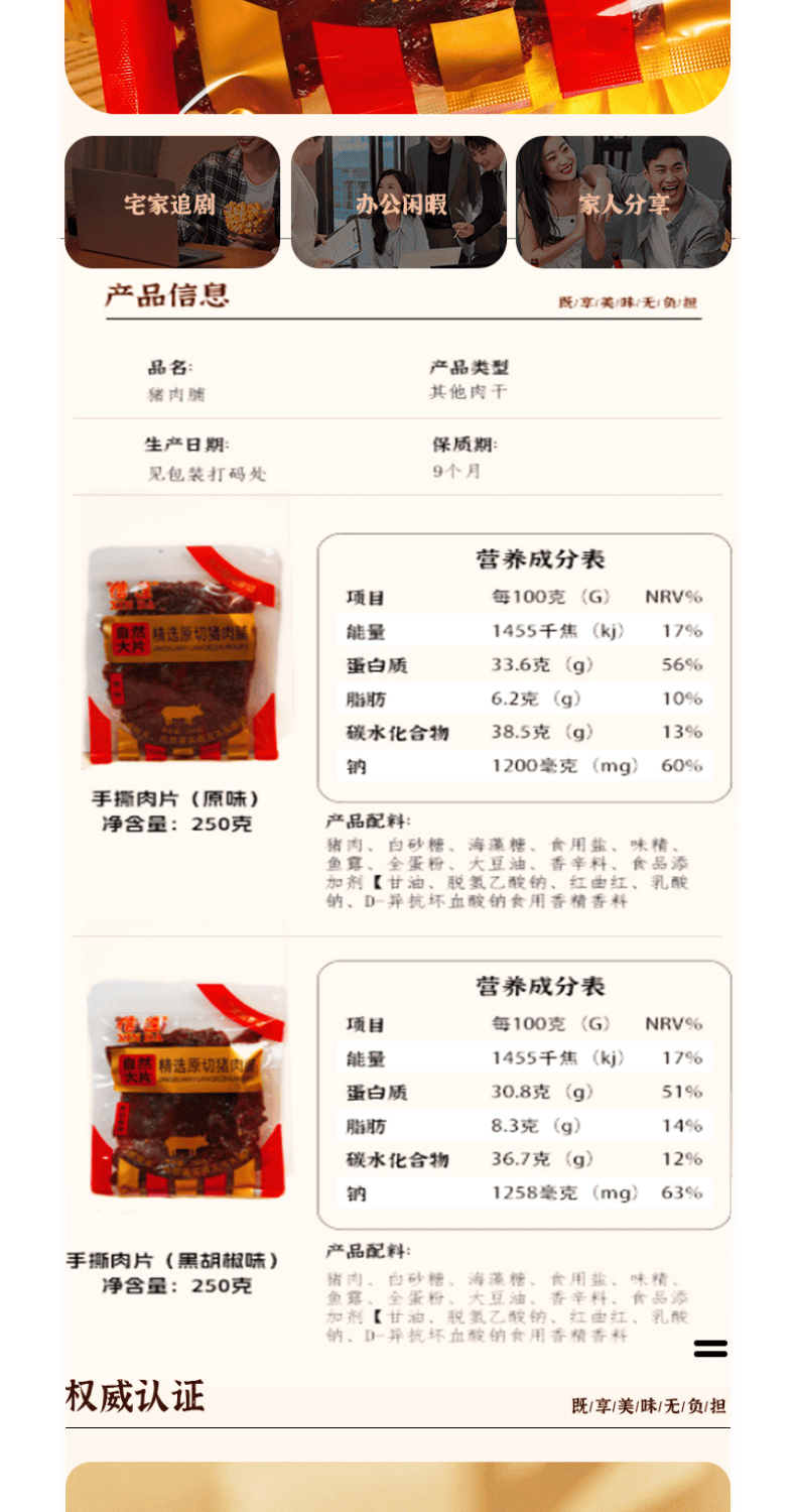 商品名称:信达精选原切猪肉脯混合口味250g*4袋