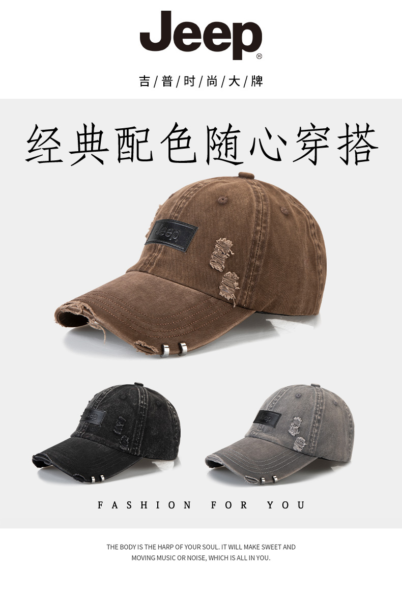 Jeep/吉普水洗牛仔做旧破洞棒球帽P950NAD413