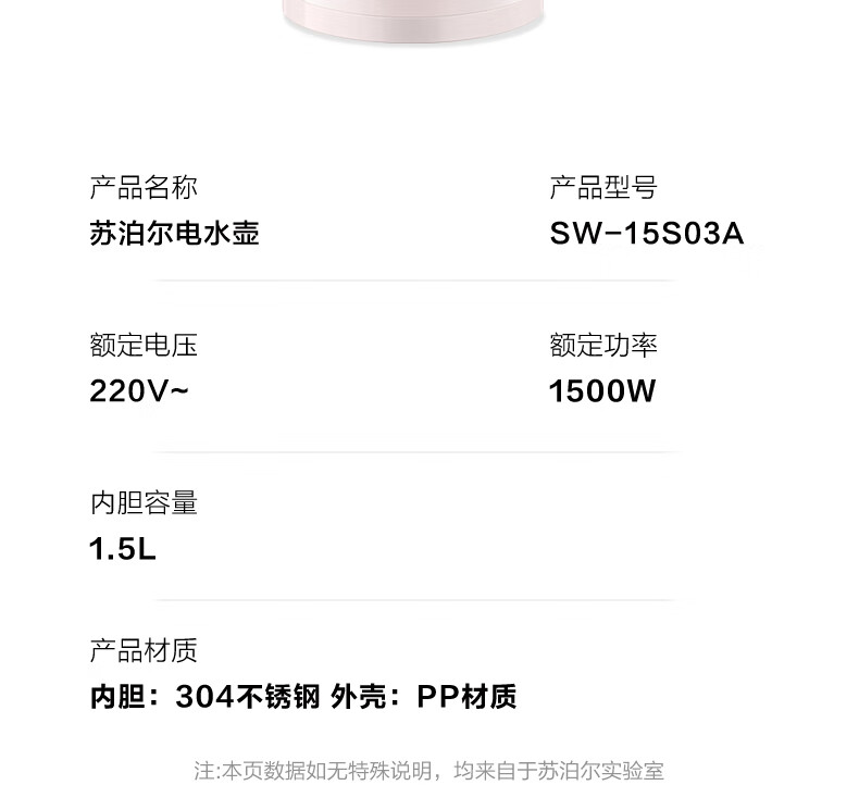 商品名称:SUPOR/苏泊尔1.5升电水壶SW-15S03A