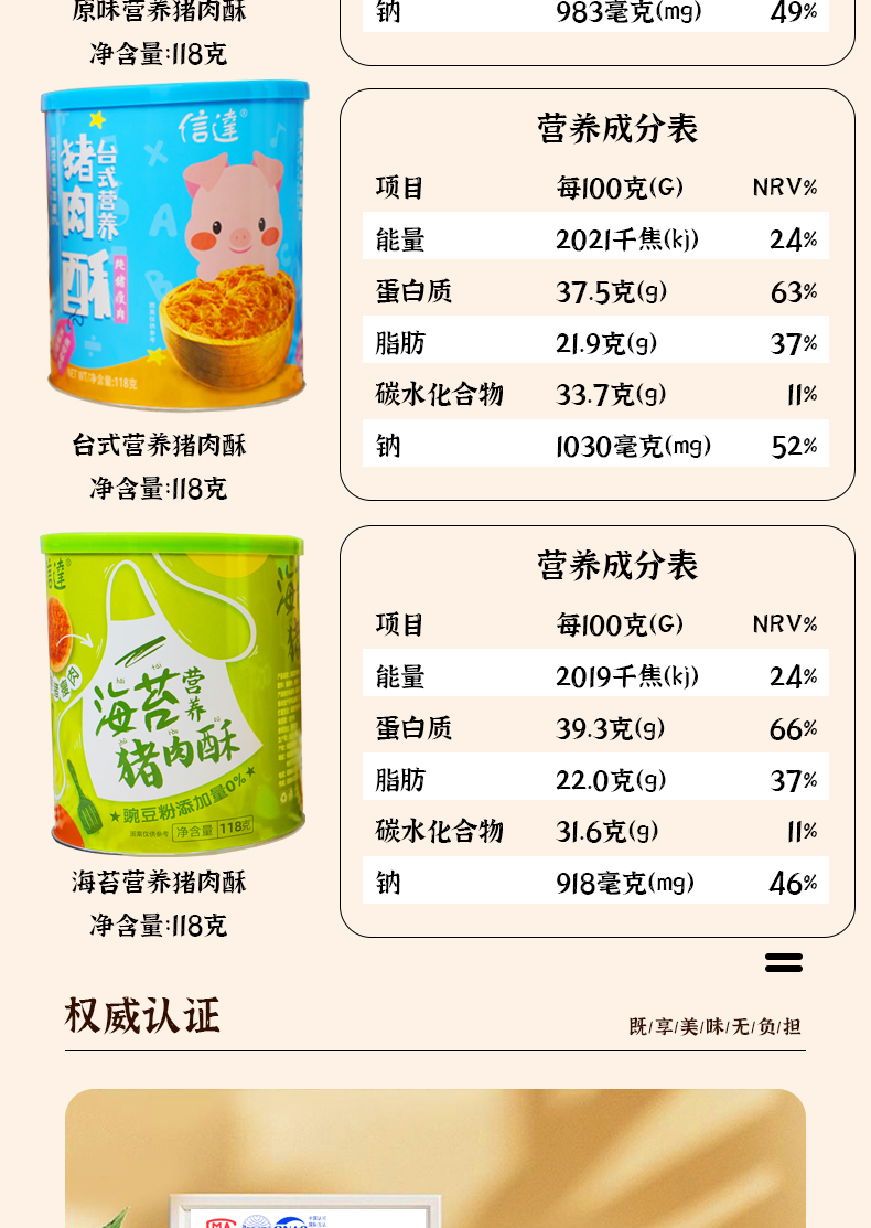 商品名称:信达无添加营养猪肉酥混合口味118g*3罐