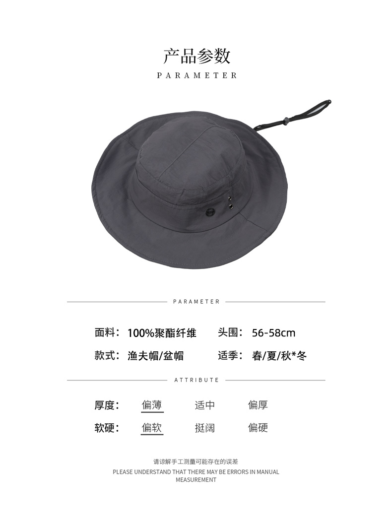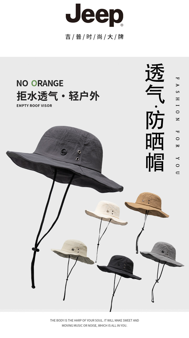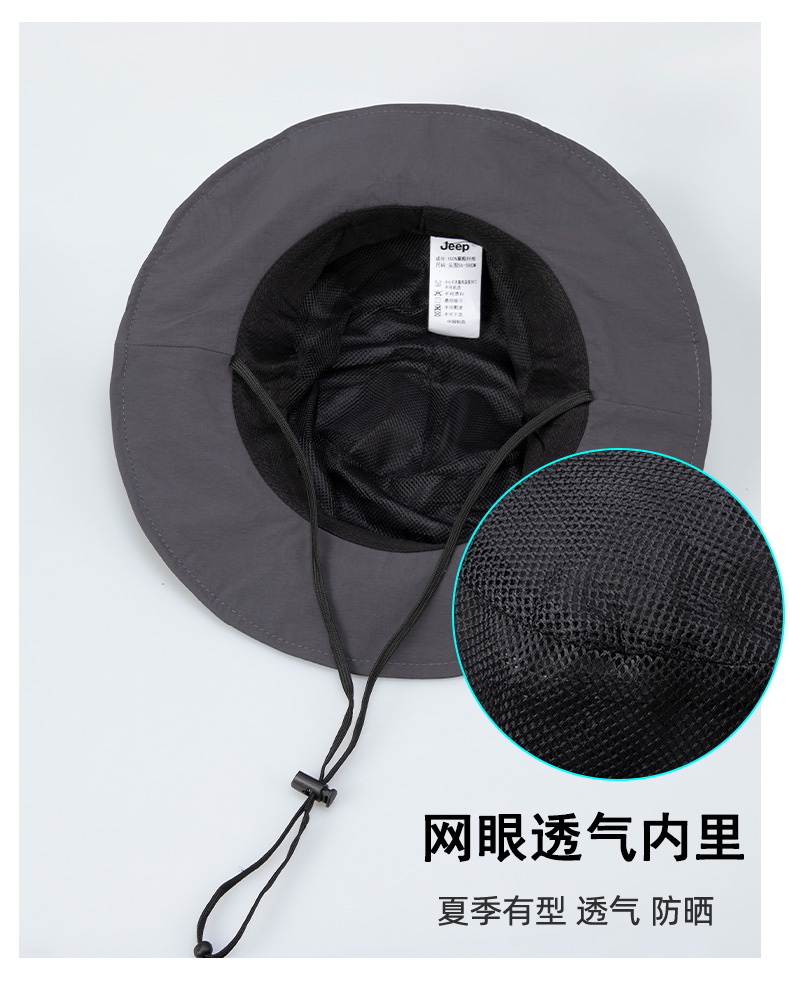 商品名称:Jeep/吉普透气防晒金属标渔夫帽P950NAD605