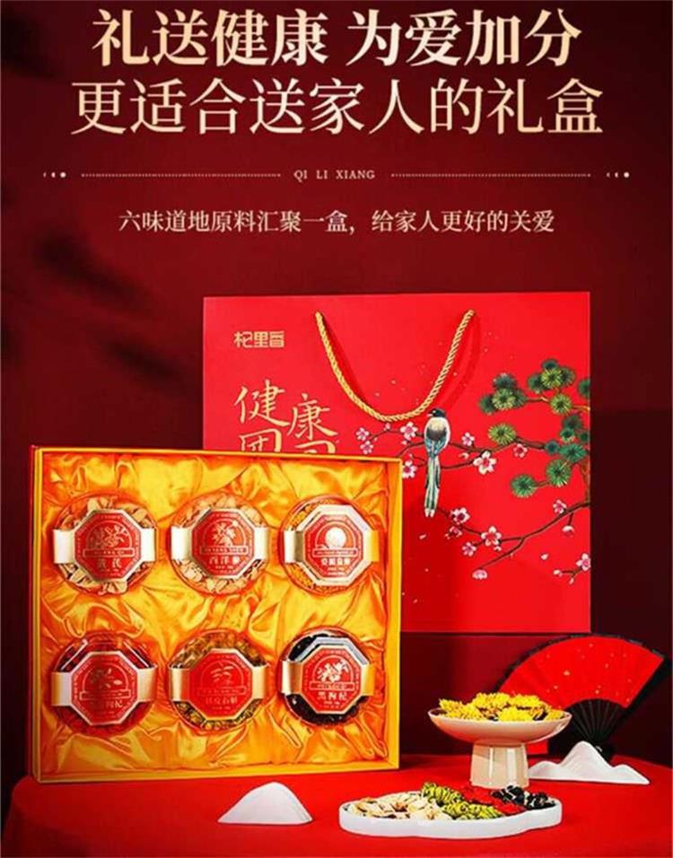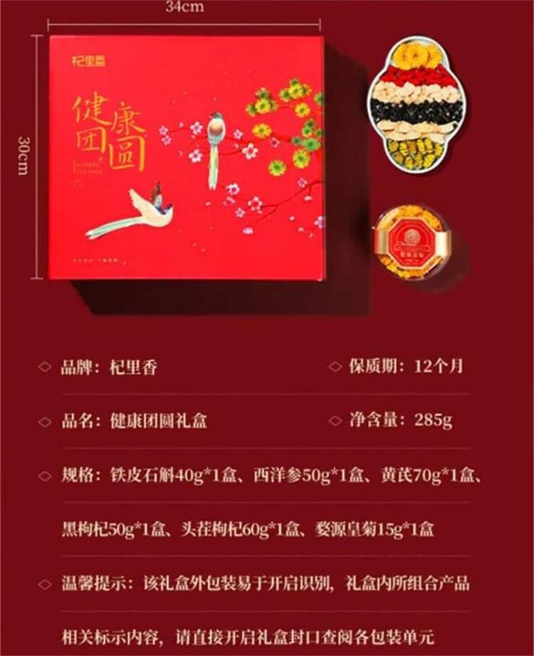 商品名称:杞里香健康团圆礼盒(6款产品)石斛西洋参红枸杞黑枸杞黄芪组合滋补礼品 共285g*1盒