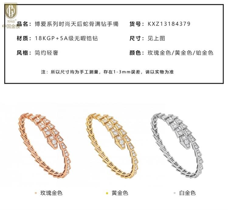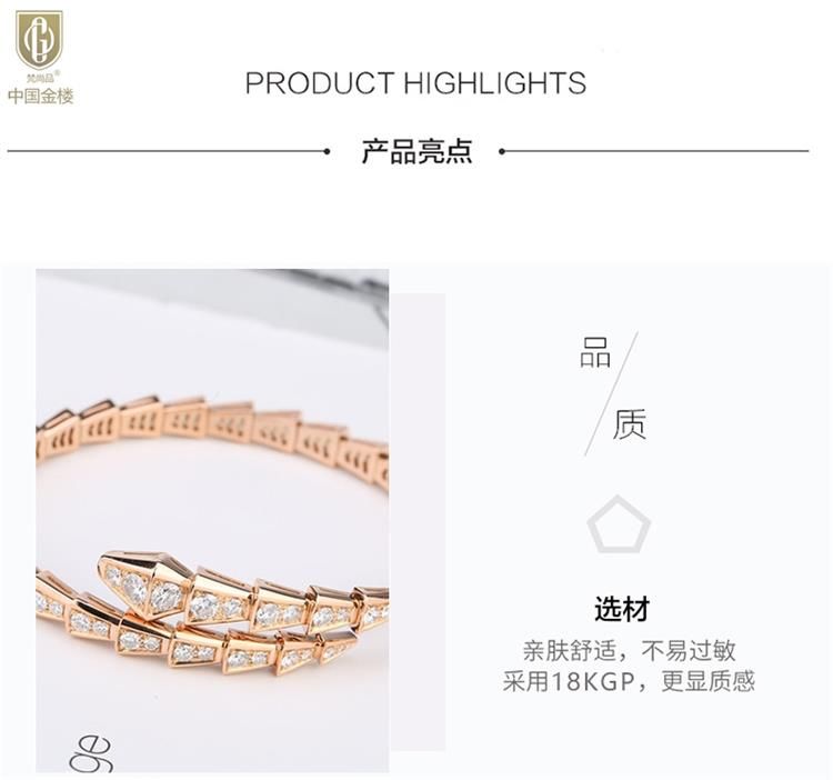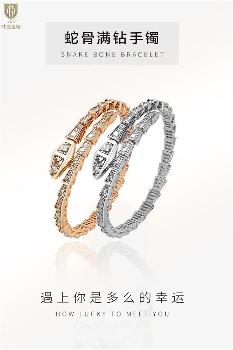 商品名称:中国金楼梵尚品博爱系列时尚天后蛇骨满钻手镯KXZ13184379送礼好物送女友(下单赠手机贴随机一个)