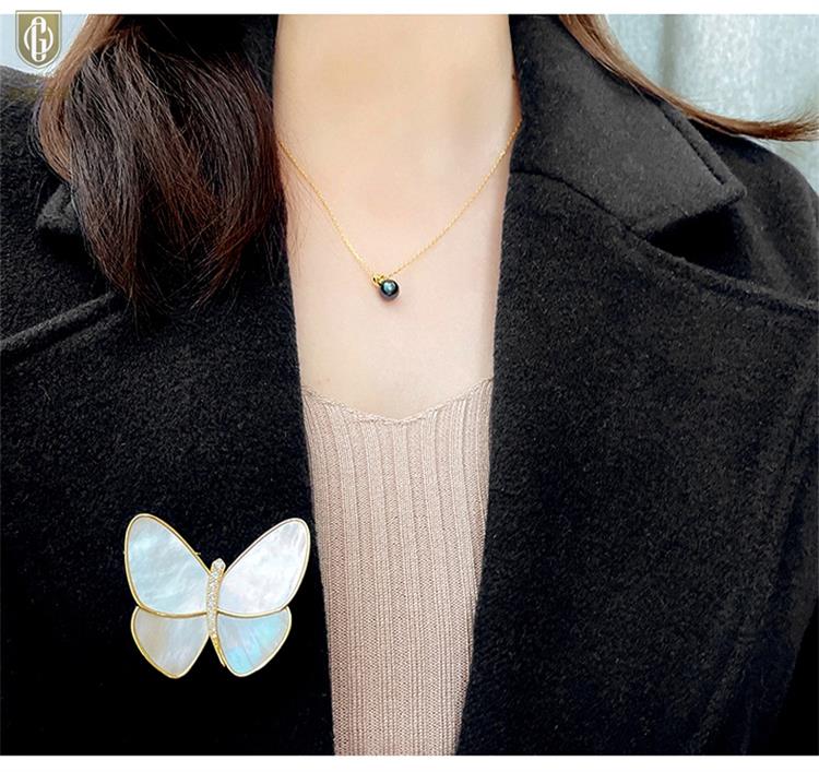 中国金楼梵尚品破茧成蝶白贝胸针HKZLF01014送礼好物送女友(下单赠手机贴随机一个)