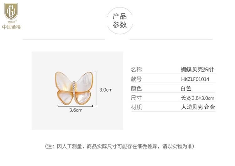 商品名称:中国金楼梵尚品破茧成蝶白贝胸针HKZLF01014送礼好物送女友(下单赠手机贴随机一个)