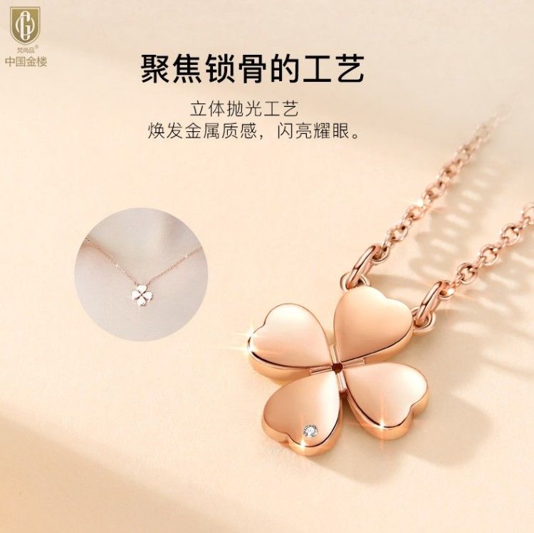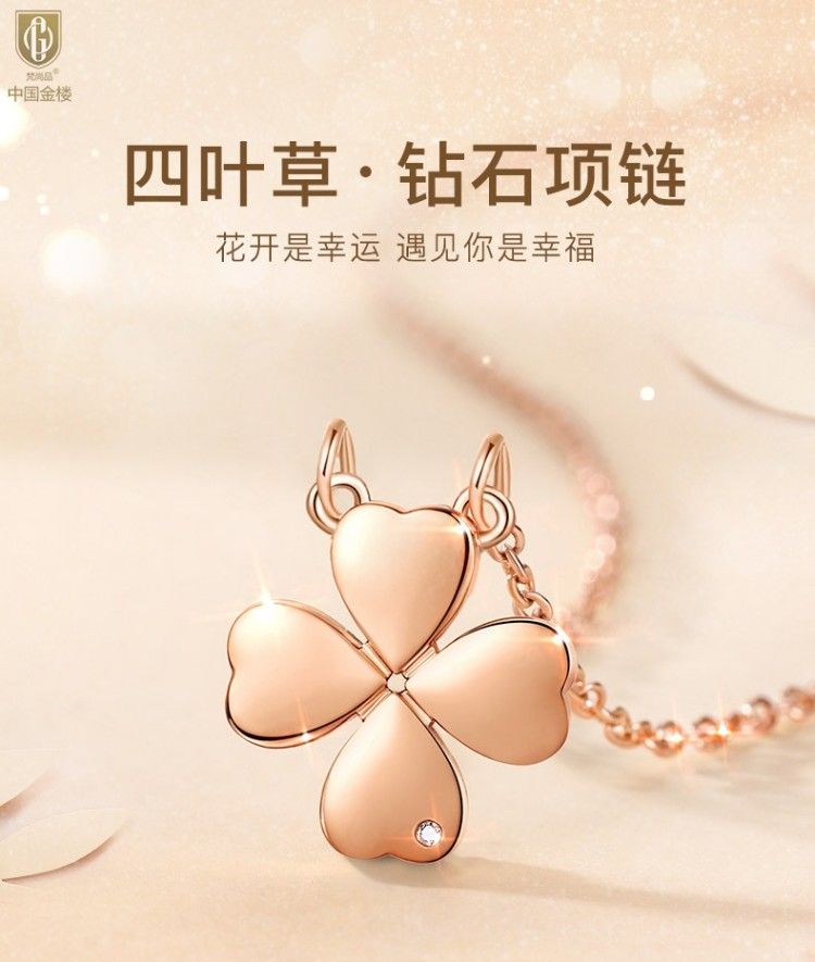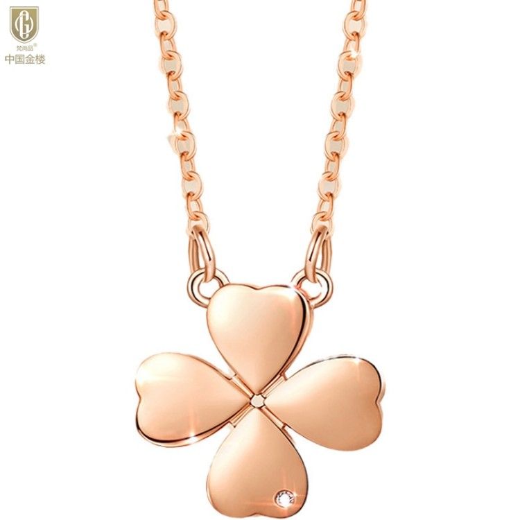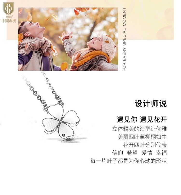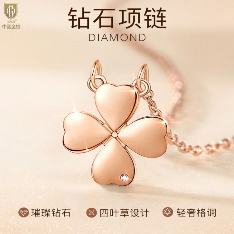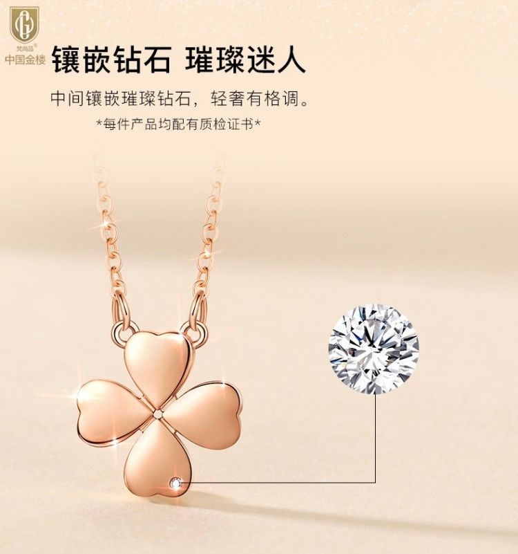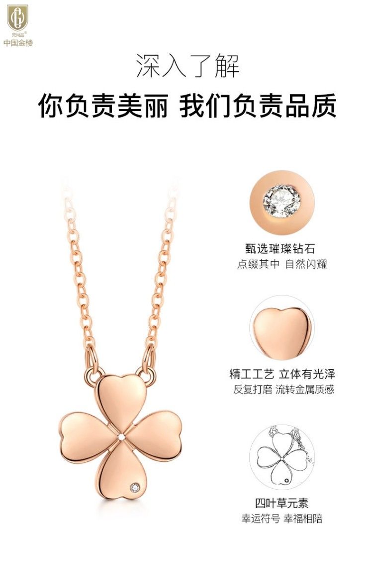 商品名称:中国金楼梵尚品18KGP镶钻南非真钻吊坠项链四叶草(长条)HKZLF06018送礼送女友(下单赠手机贴随机一个)
