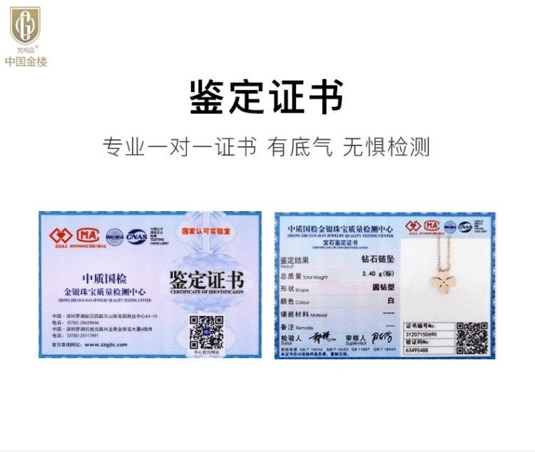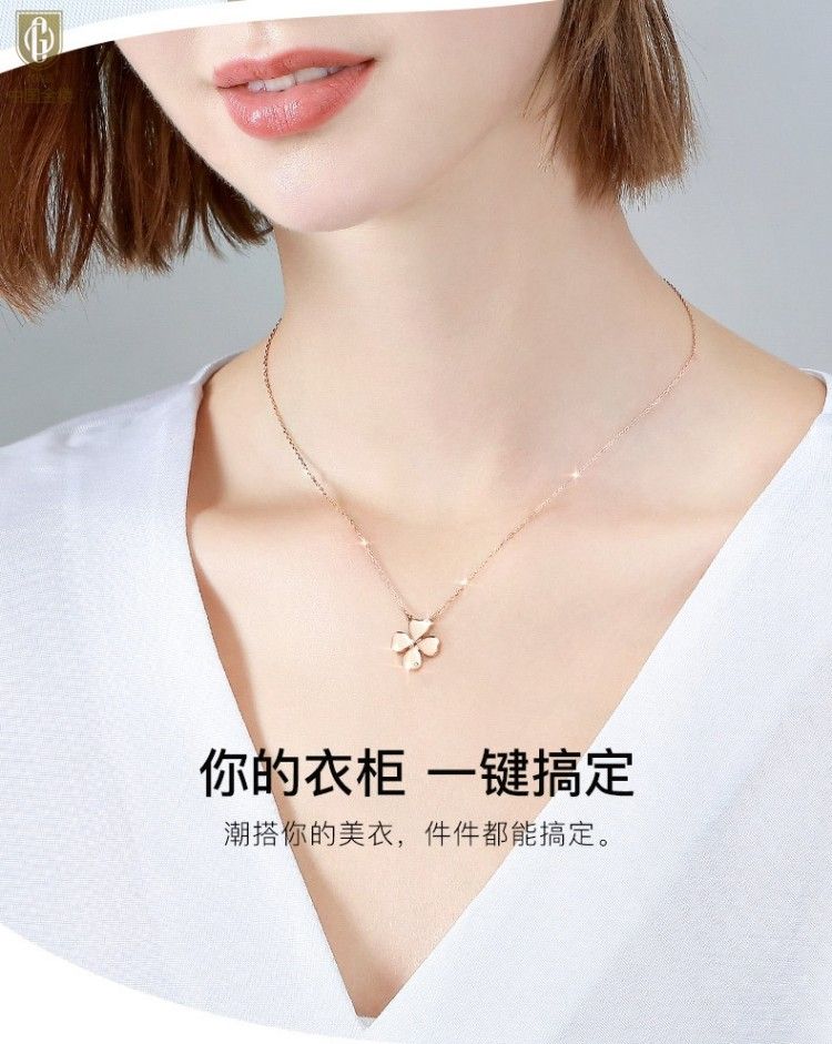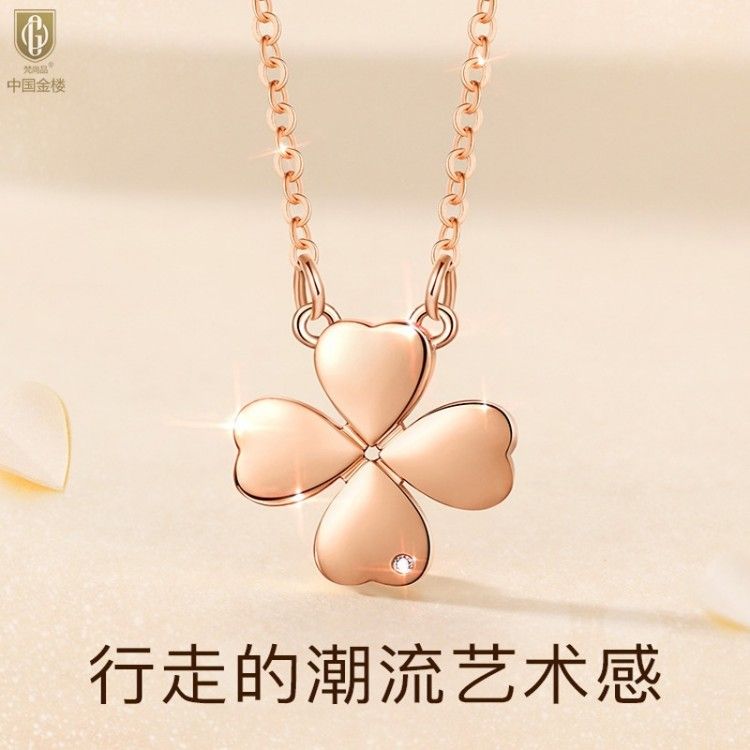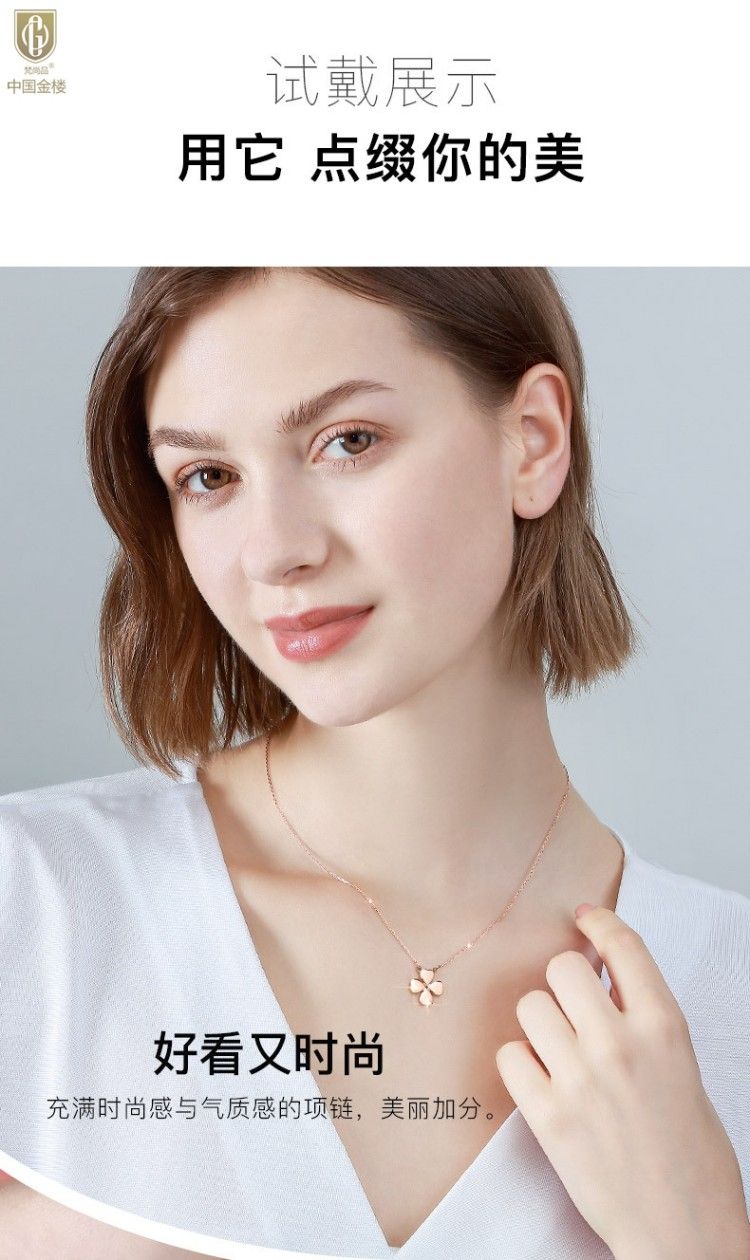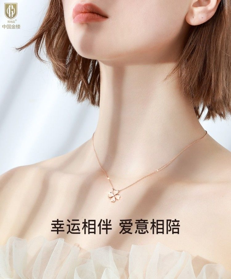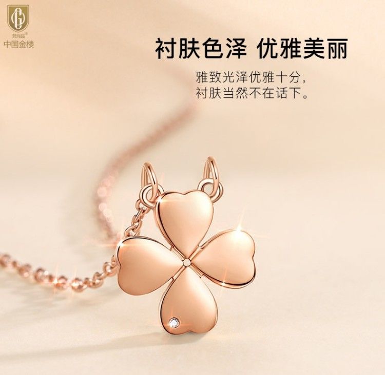 商品名称:中国金楼梵尚品18KGP镶钻南非真钻吊坠项链四叶草(长条)HKZLF06018送礼送女友(下单赠手机贴随机一个)