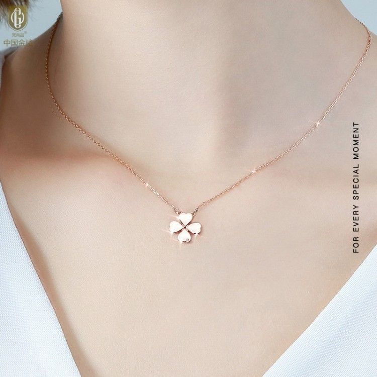 中国金楼梵尚品18KGP镶钻南非真钻吊坠项链四叶草(长条)HKZLF06018送礼送女友(下单赠手机贴随机一个)