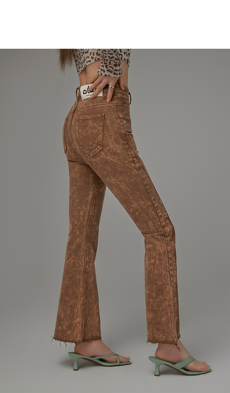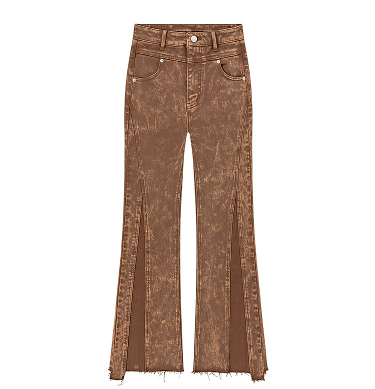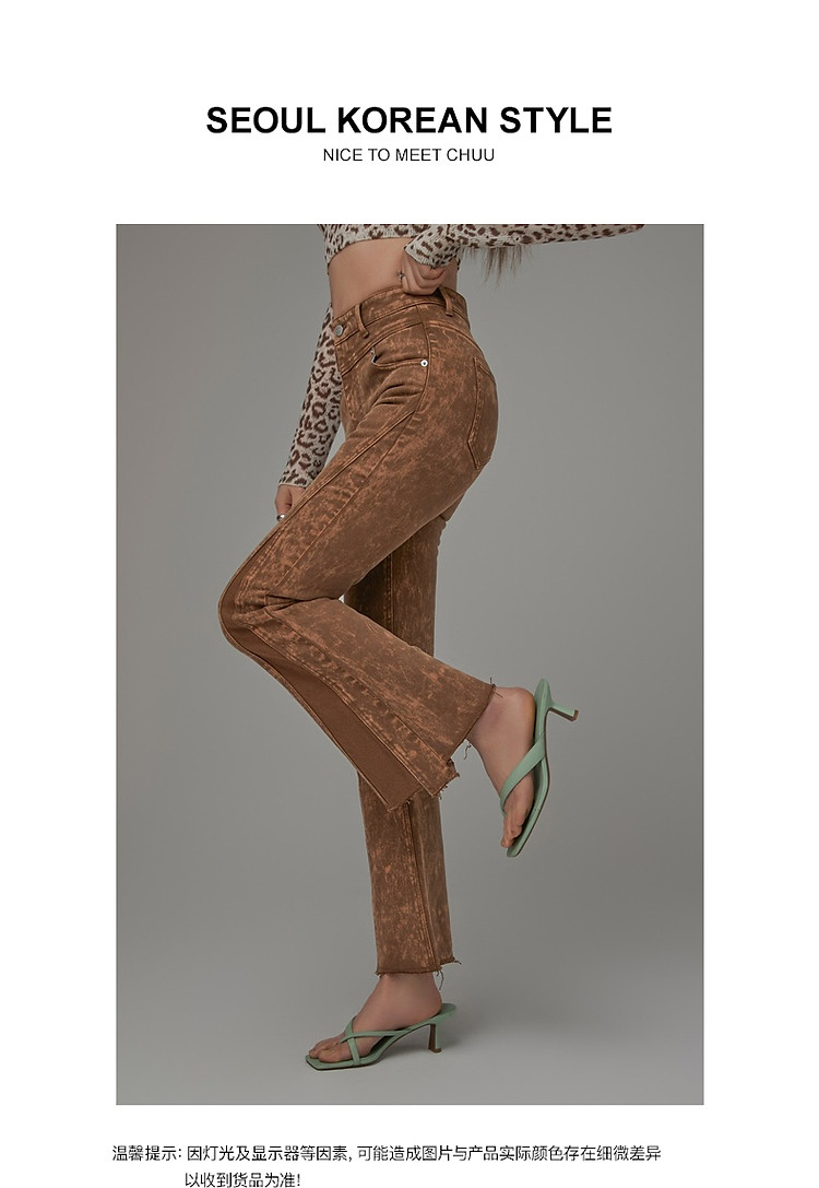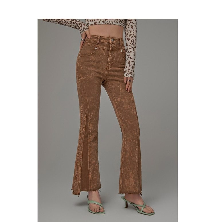商品名称:毛边微喇牛仔裤女2025夏设计感拼接洋气修身九分裤 048403