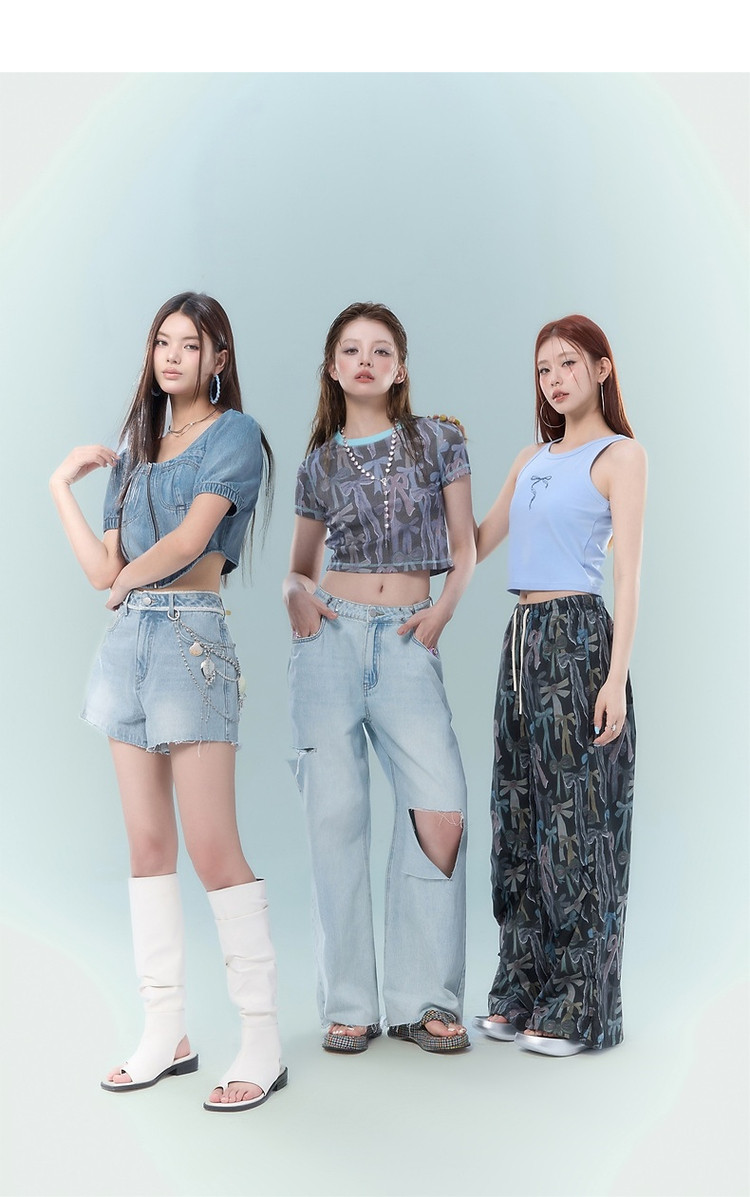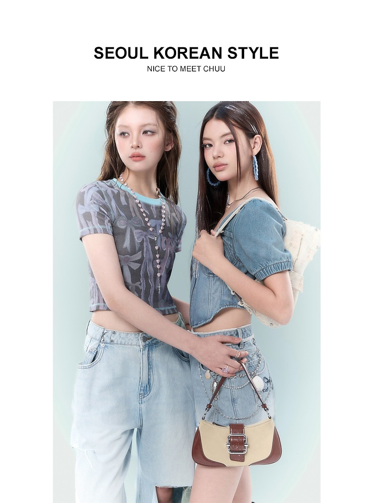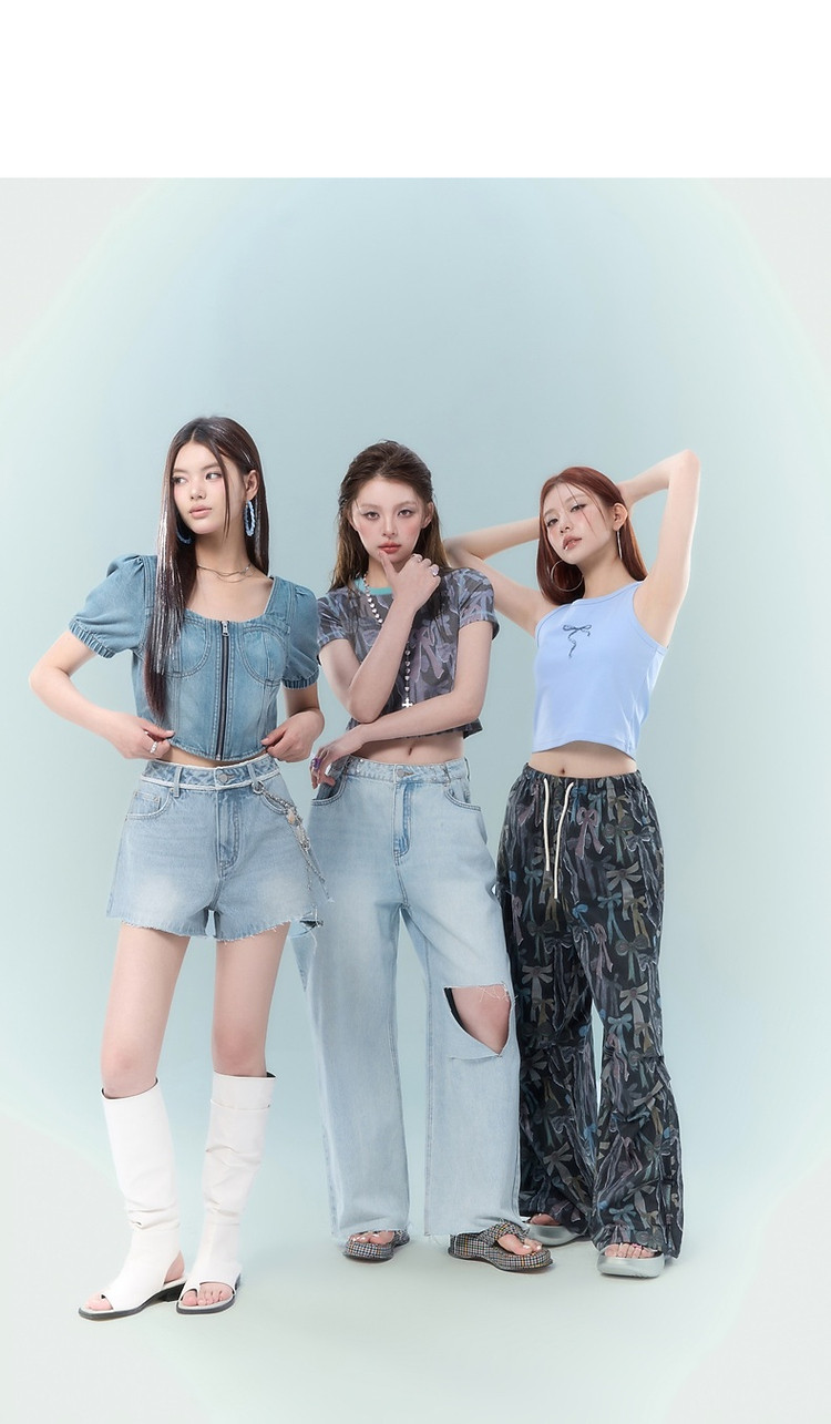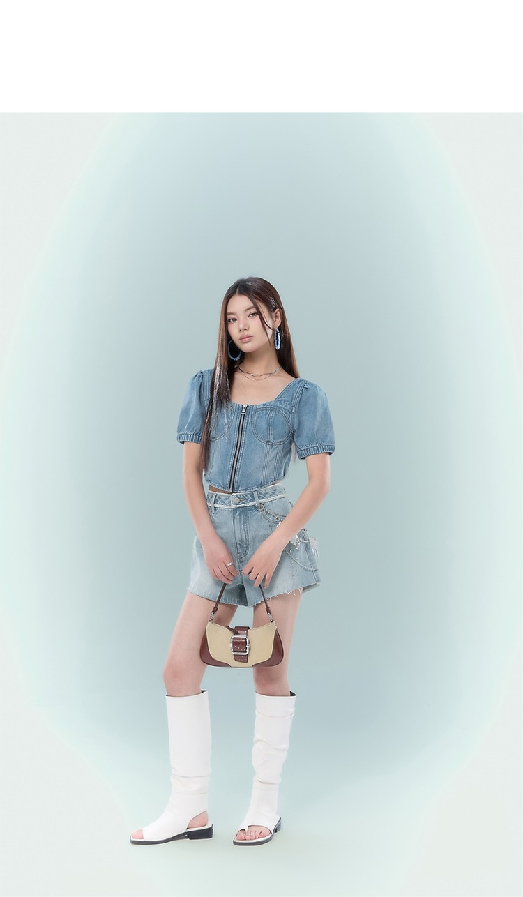 刺绣字母外套女士2025夏拉链泡泡袖短袖牛仔短上衣 015251
