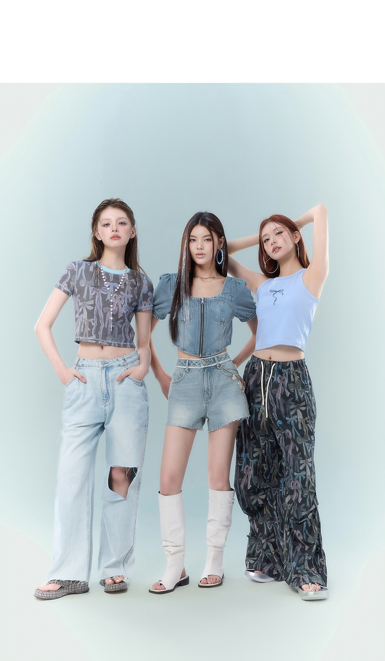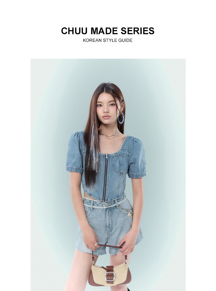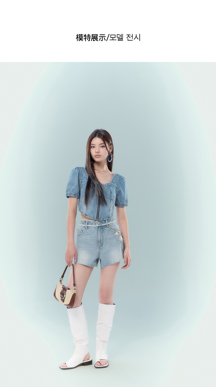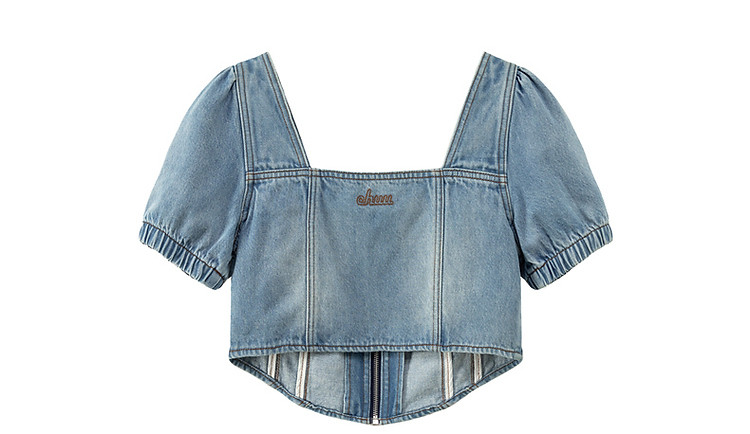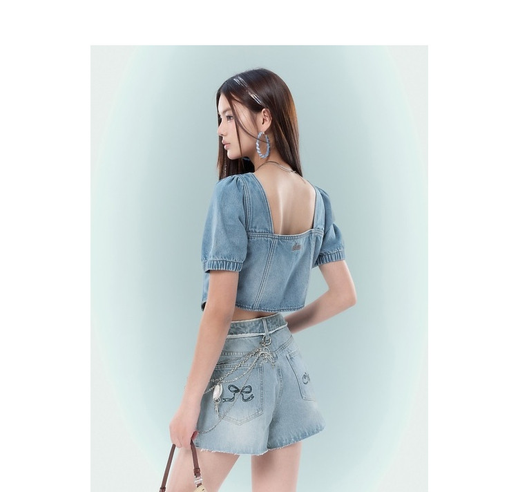 商品名称:刺绣字母外套女士2025夏拉链泡泡袖短袖牛仔短上衣 015251