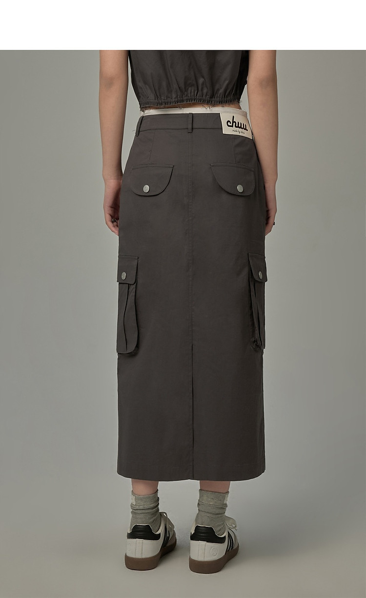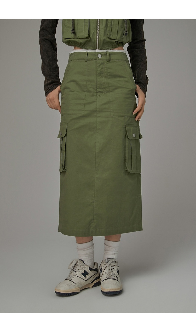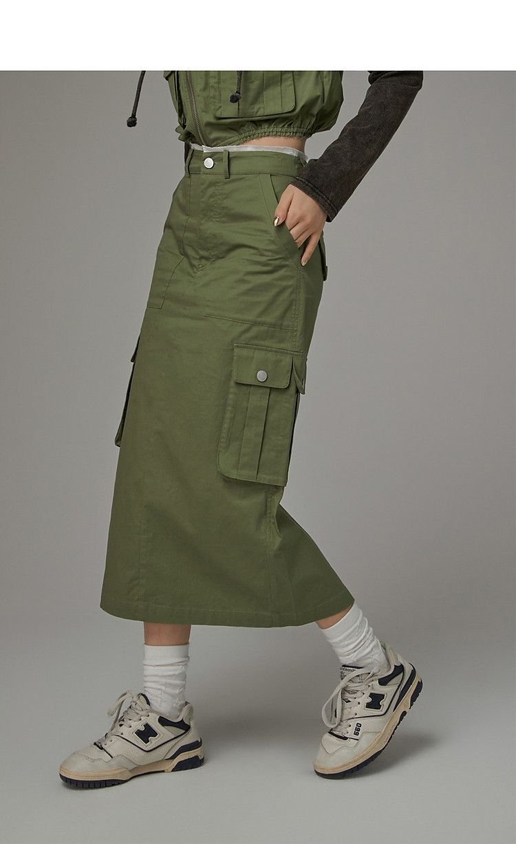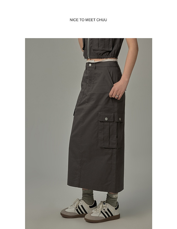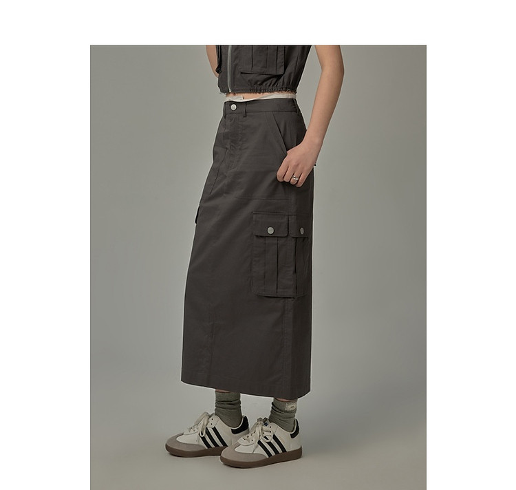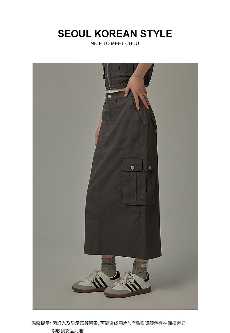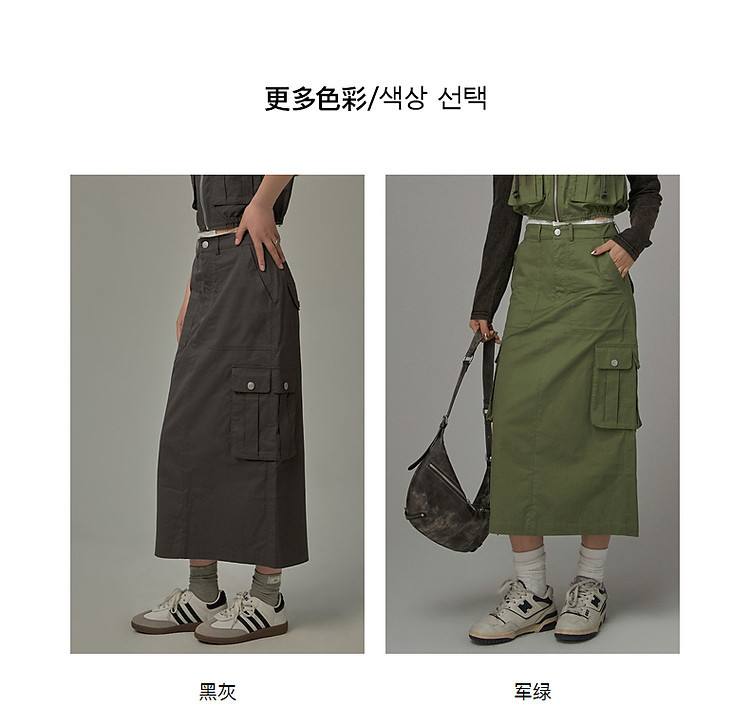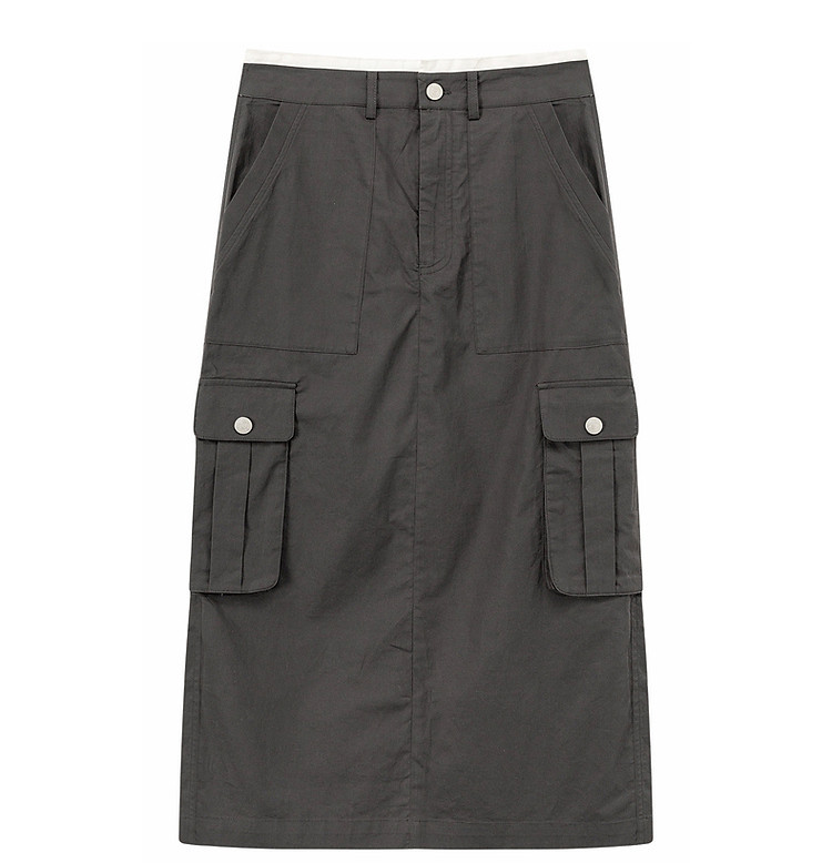 商品名称:高腰开叉半身裙女2025夏设计感口袋个性休闲中长裙子 402451