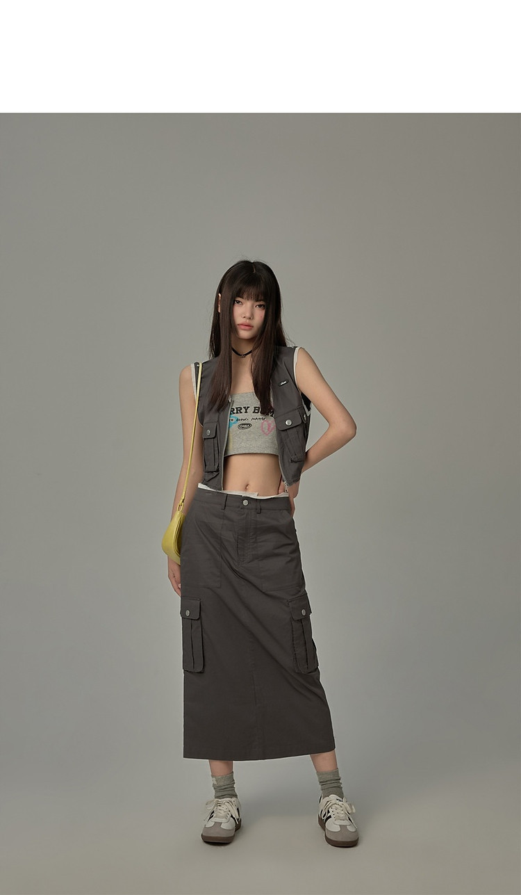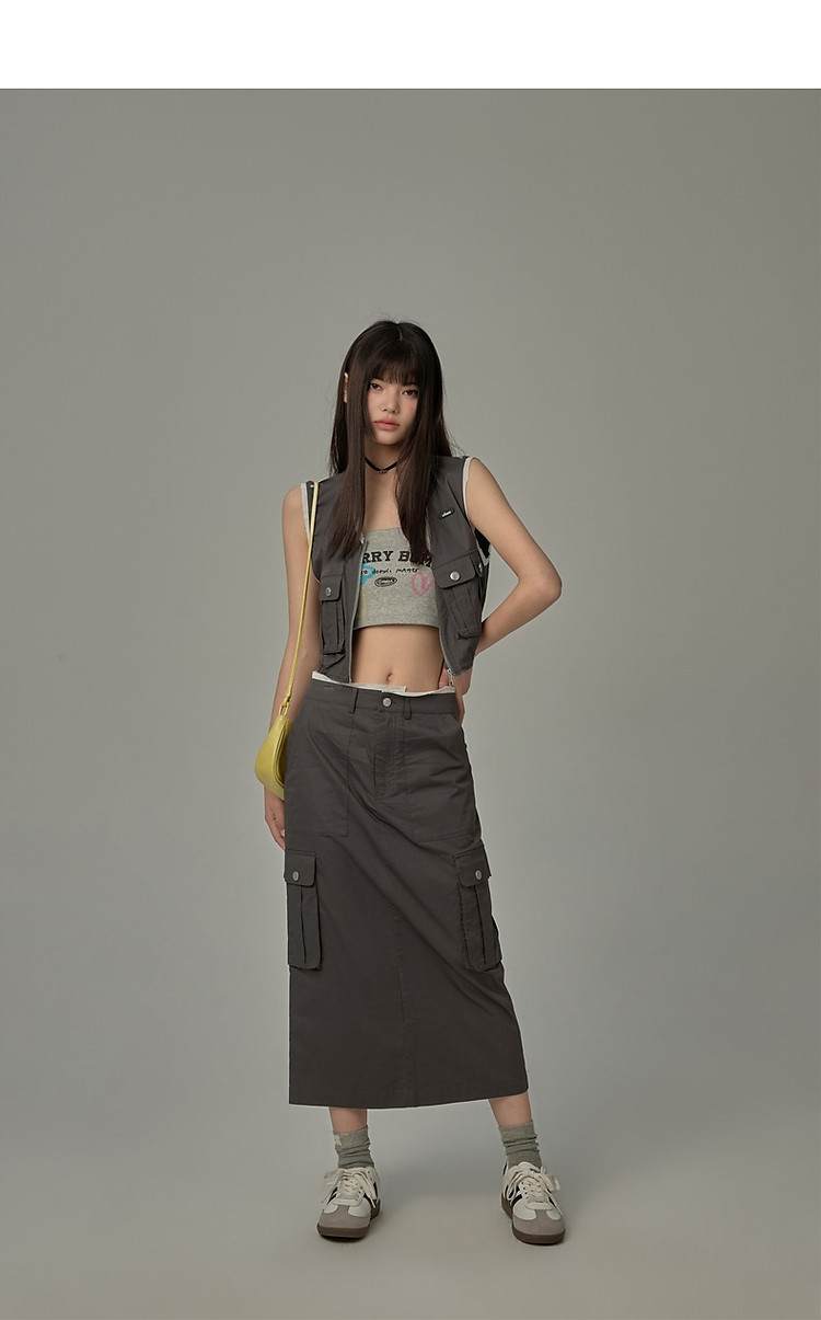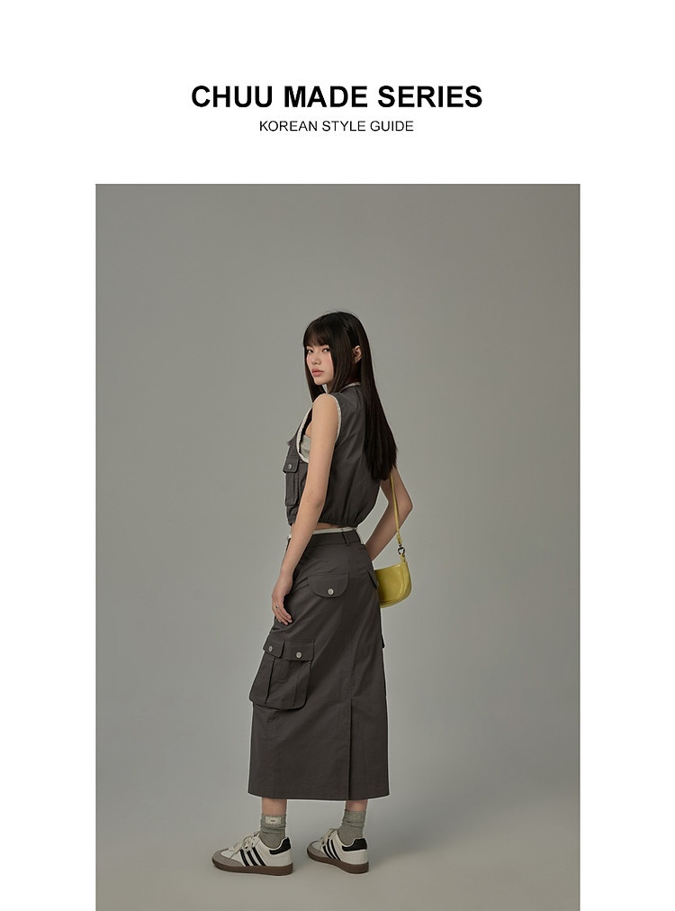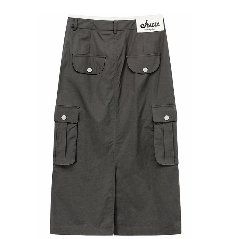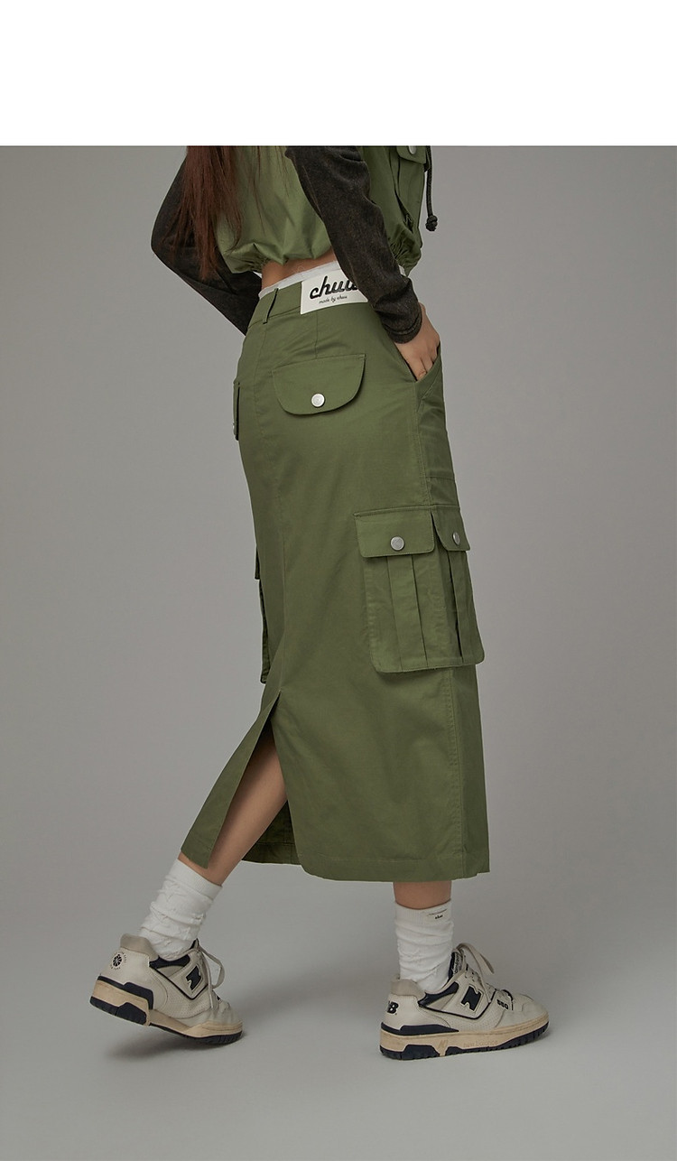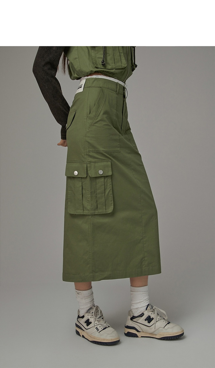 商品名称:高腰开叉半身裙女2025夏设计感口袋个性休闲中长裙子 402451