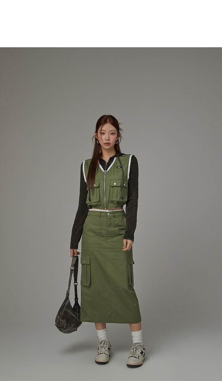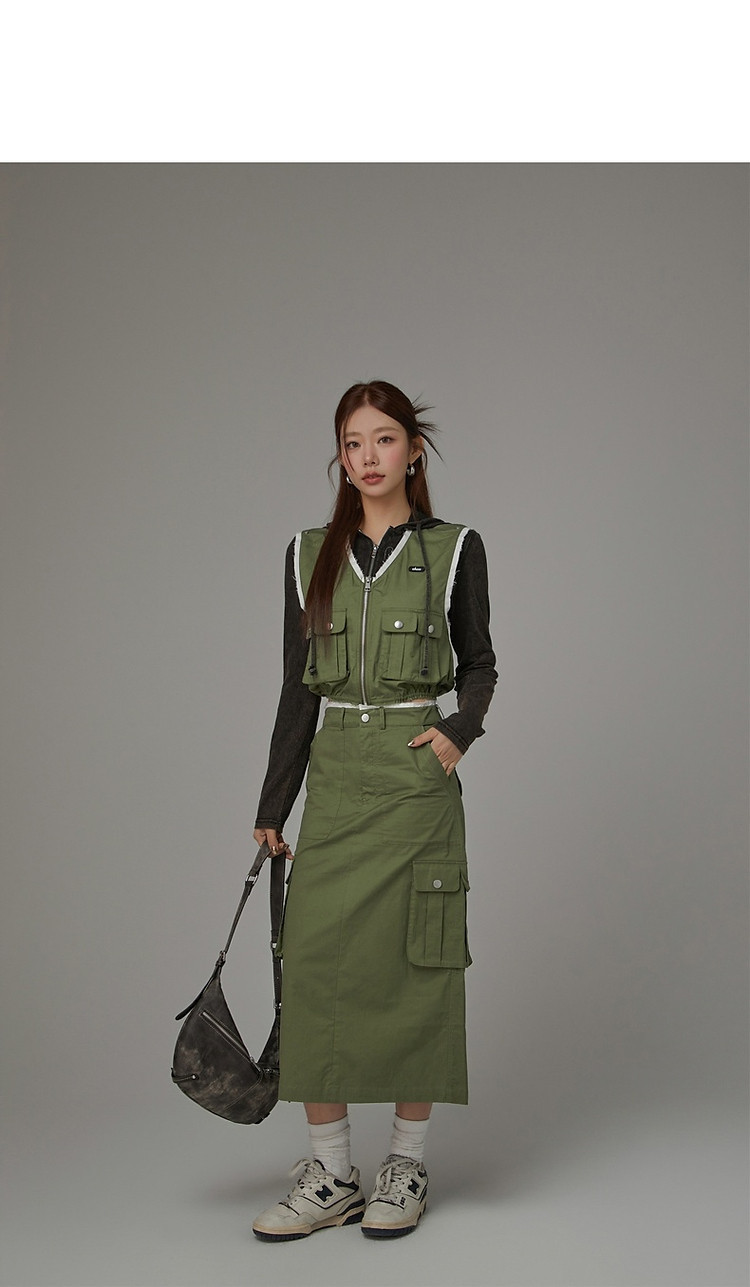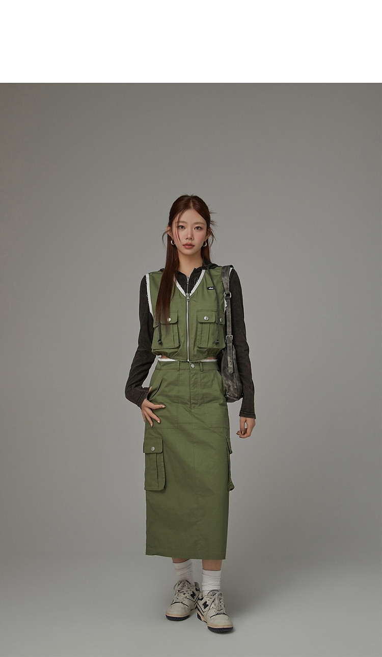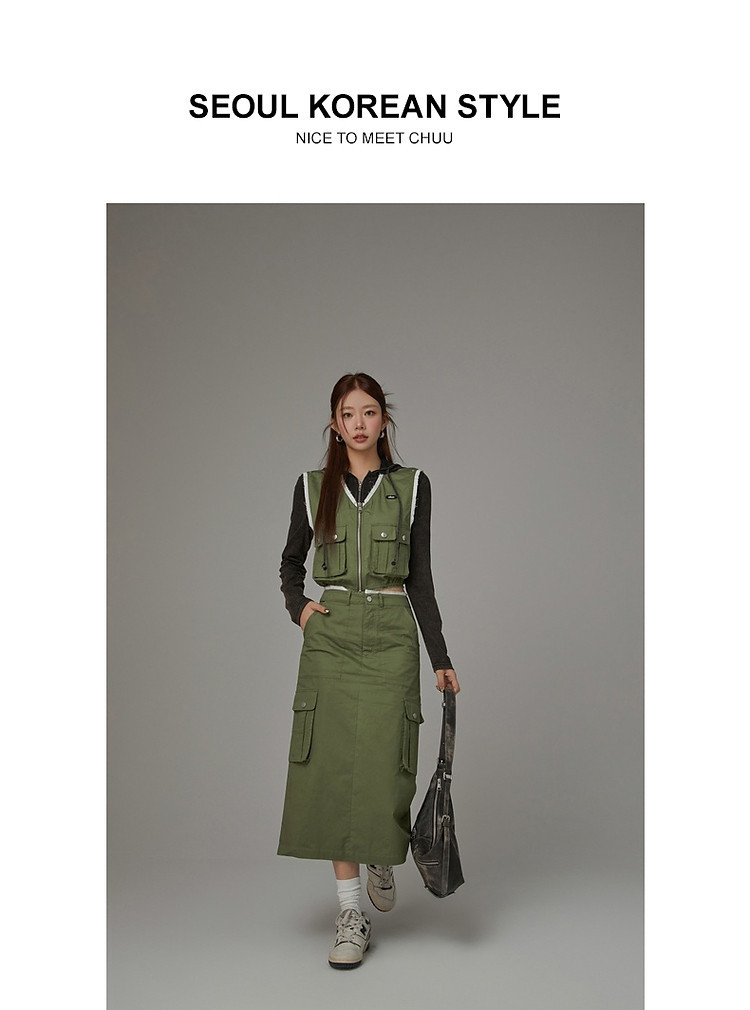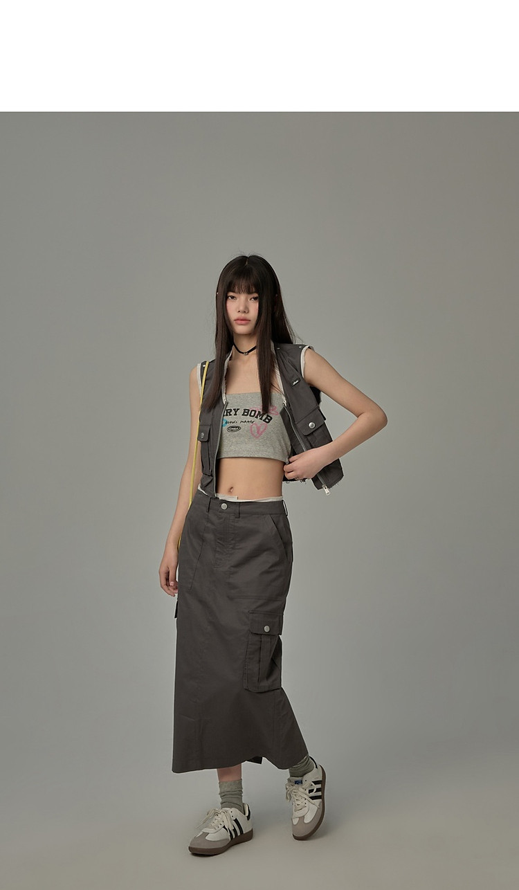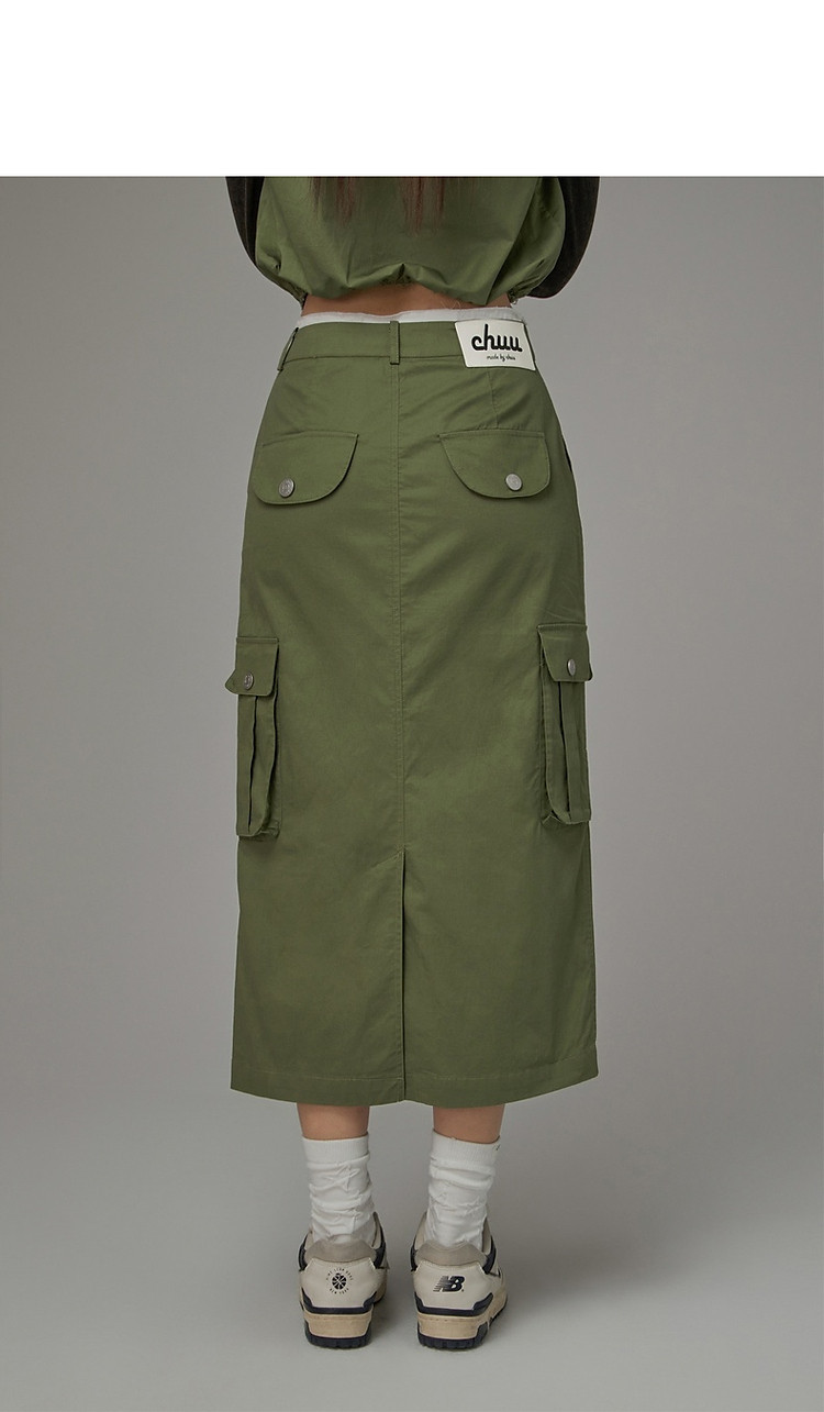 商品名称:高腰开叉半身裙女2025夏设计感口袋个性休闲中长裙子 402451