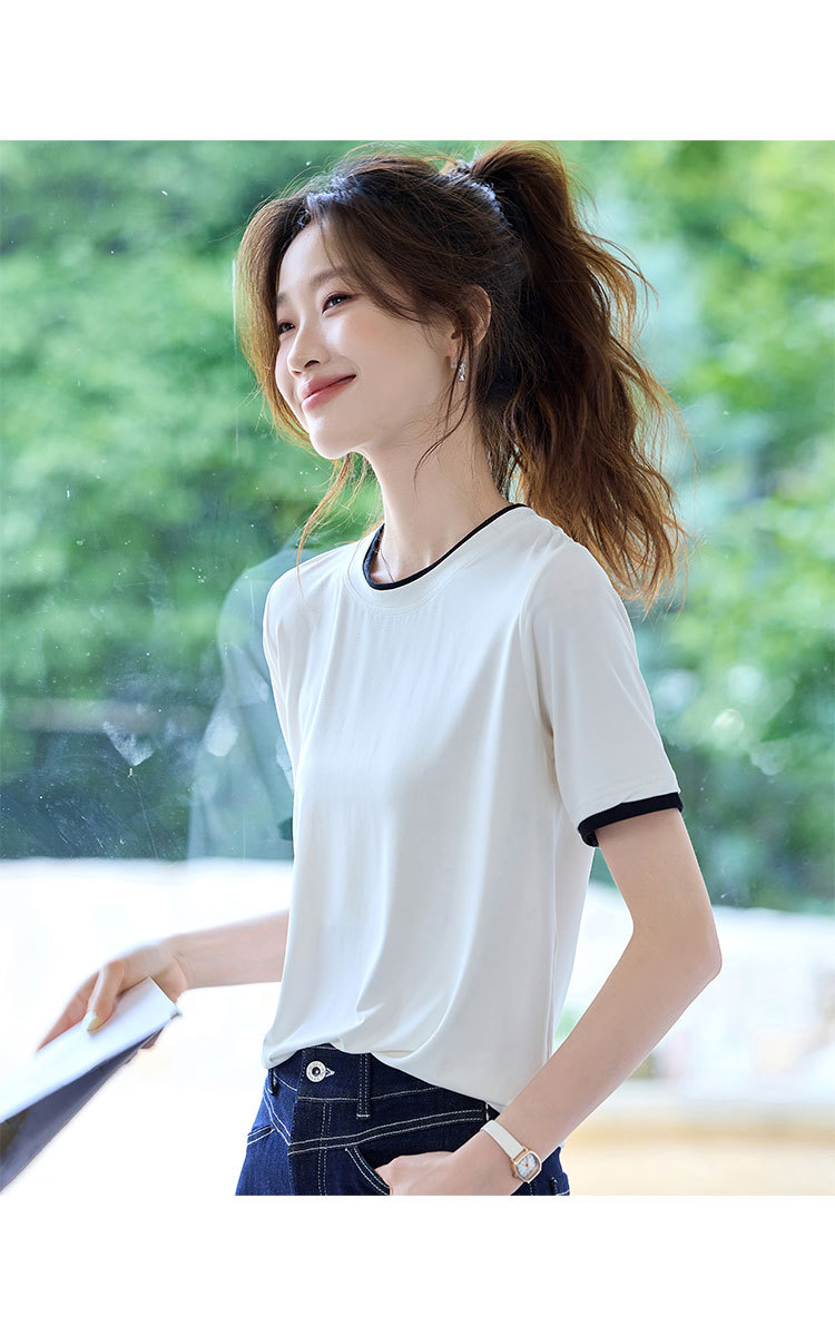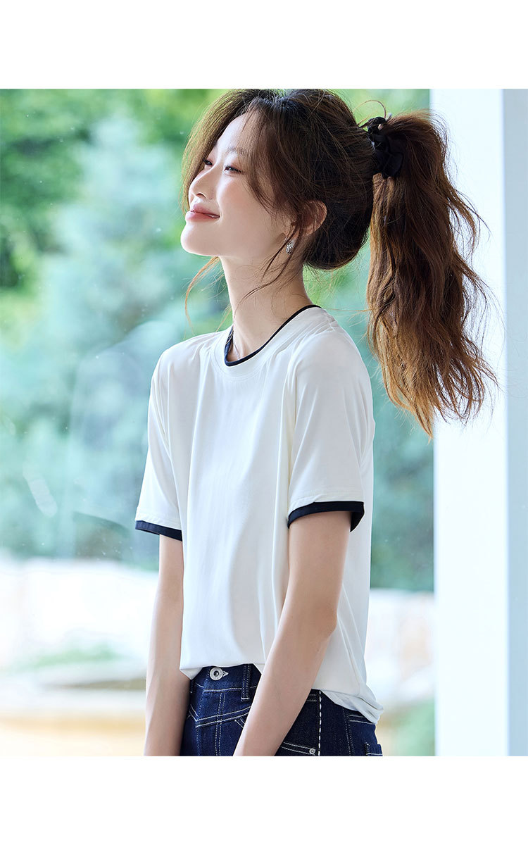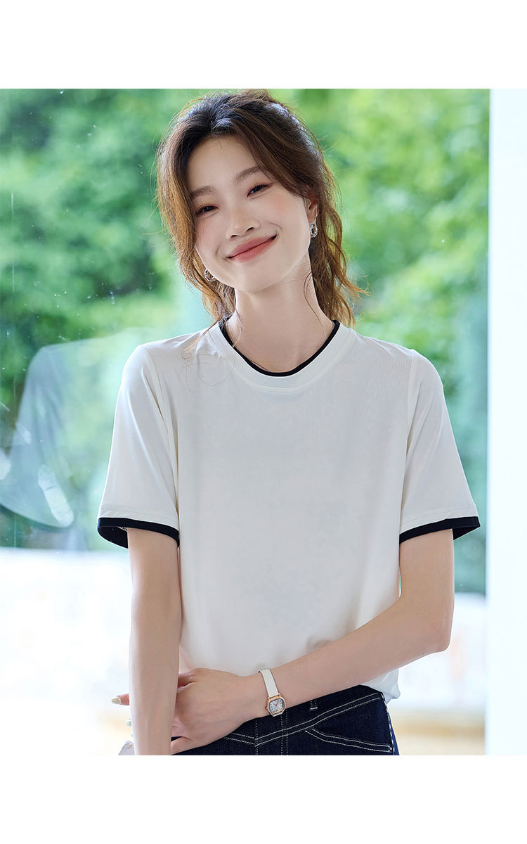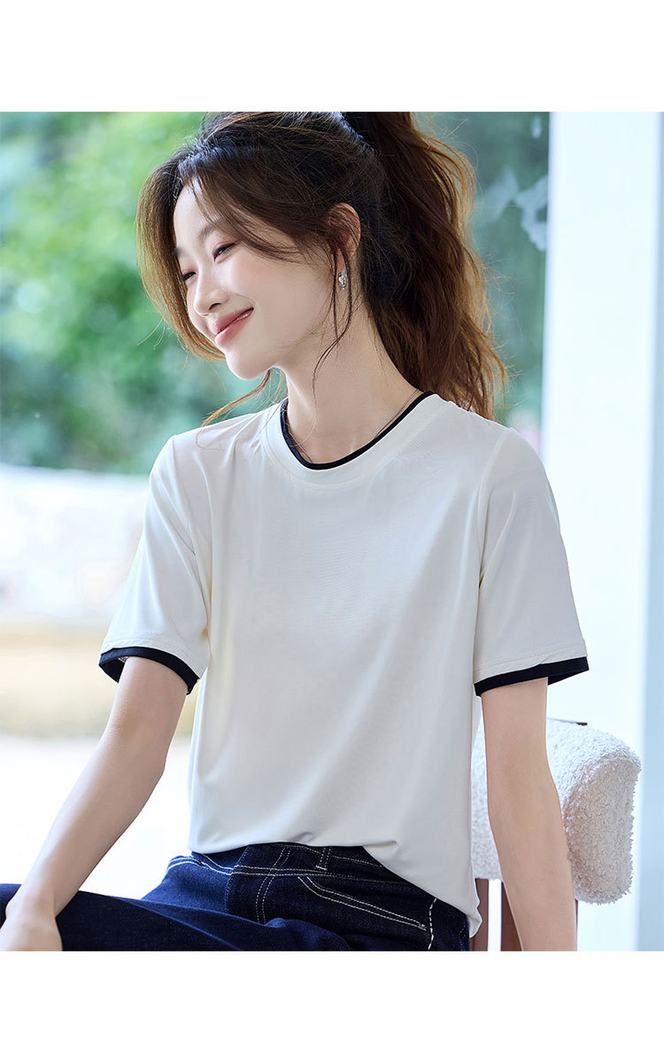 商品名称:2025夏款拼色假两件短袖t恤女圆领内搭减龄休闲打底衫女上衣 987487