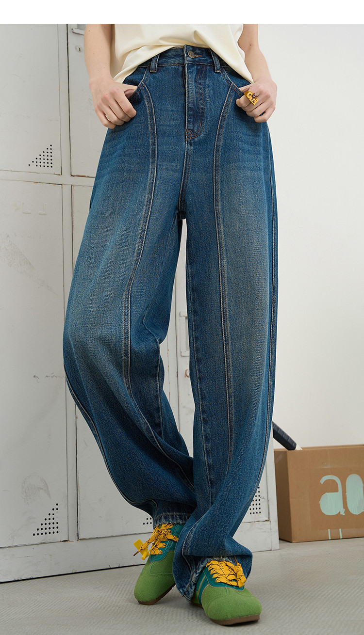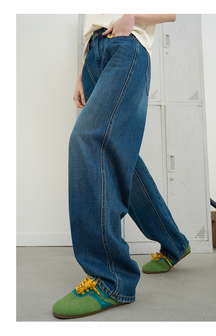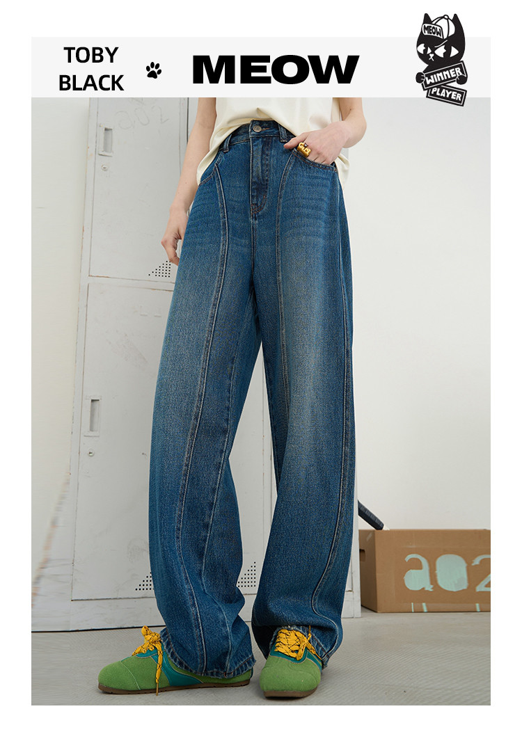 复古做旧高腰休闲直筒拖地裤2025夏季宽松百搭女式牛仔裤 285149