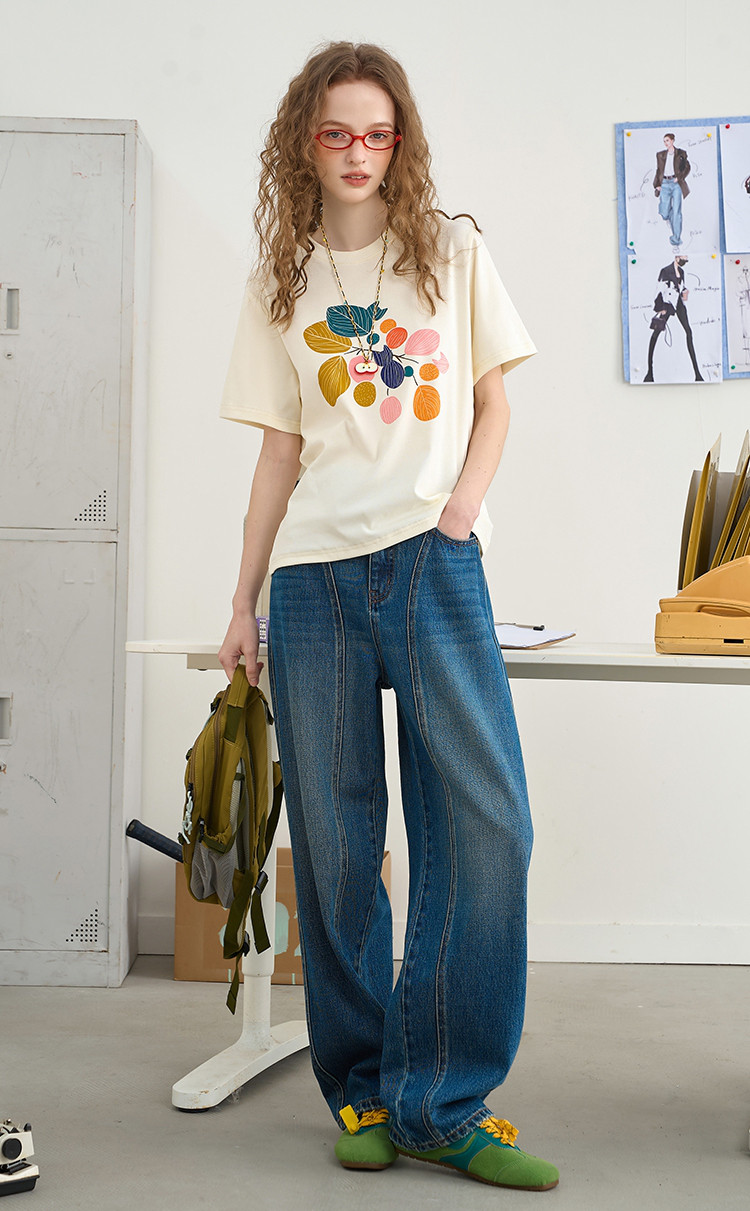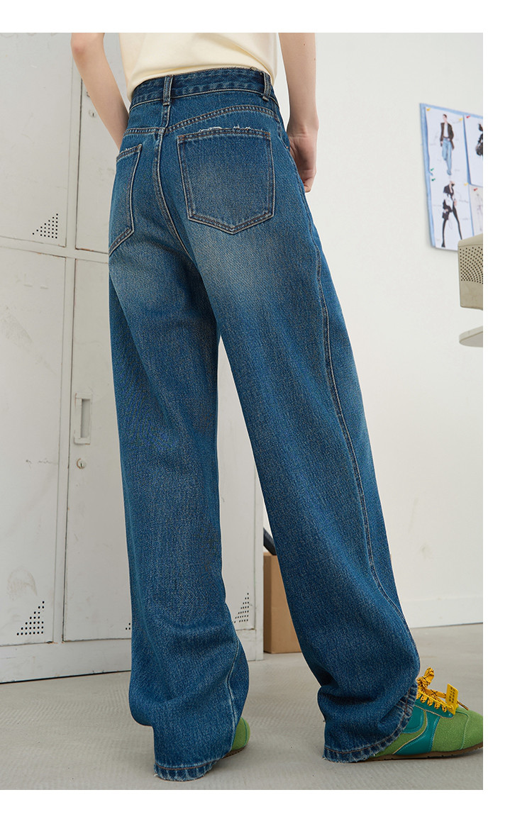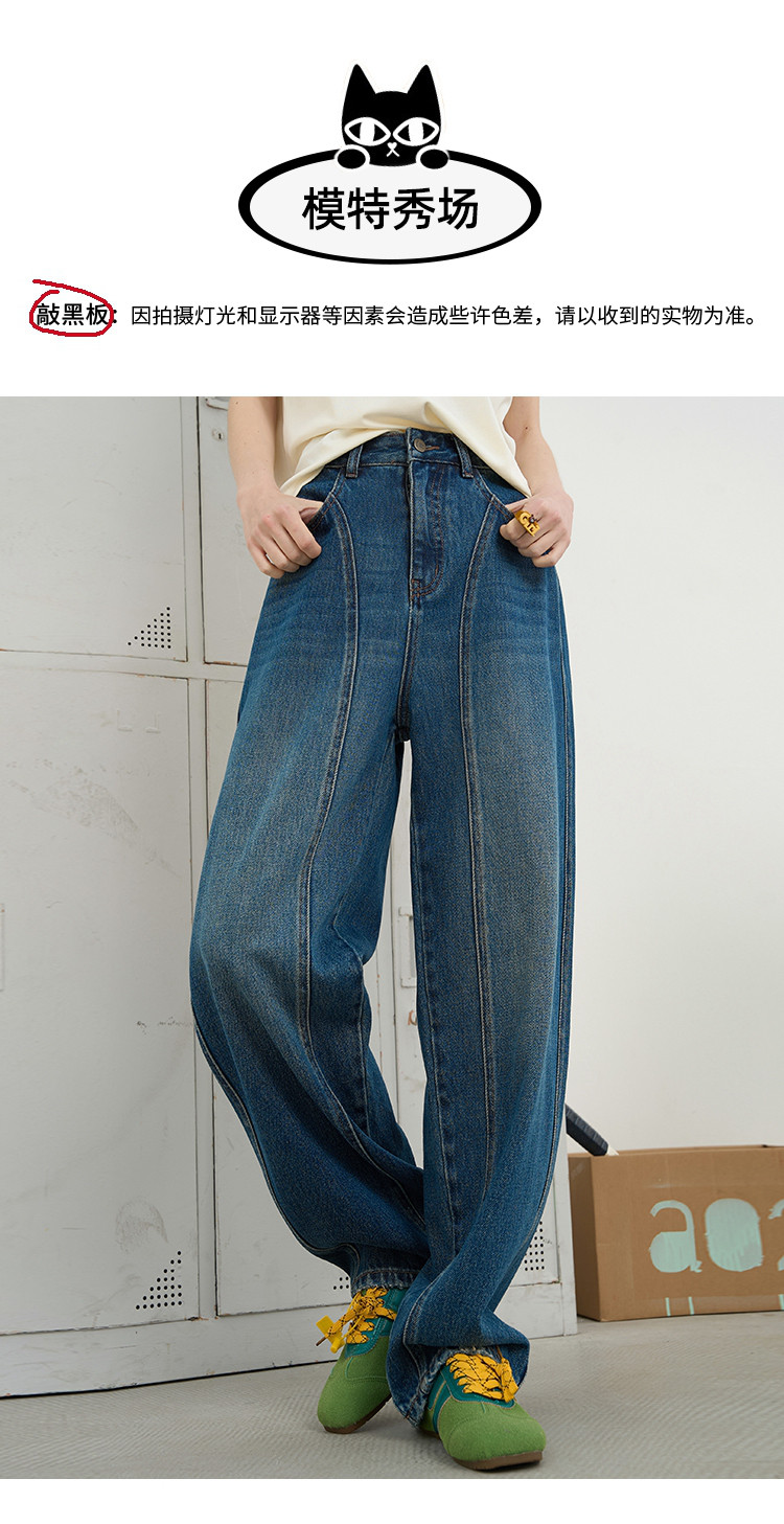 商品名称:复古做旧高腰休闲直筒拖地裤2025夏季宽松百搭女式牛仔裤 285149