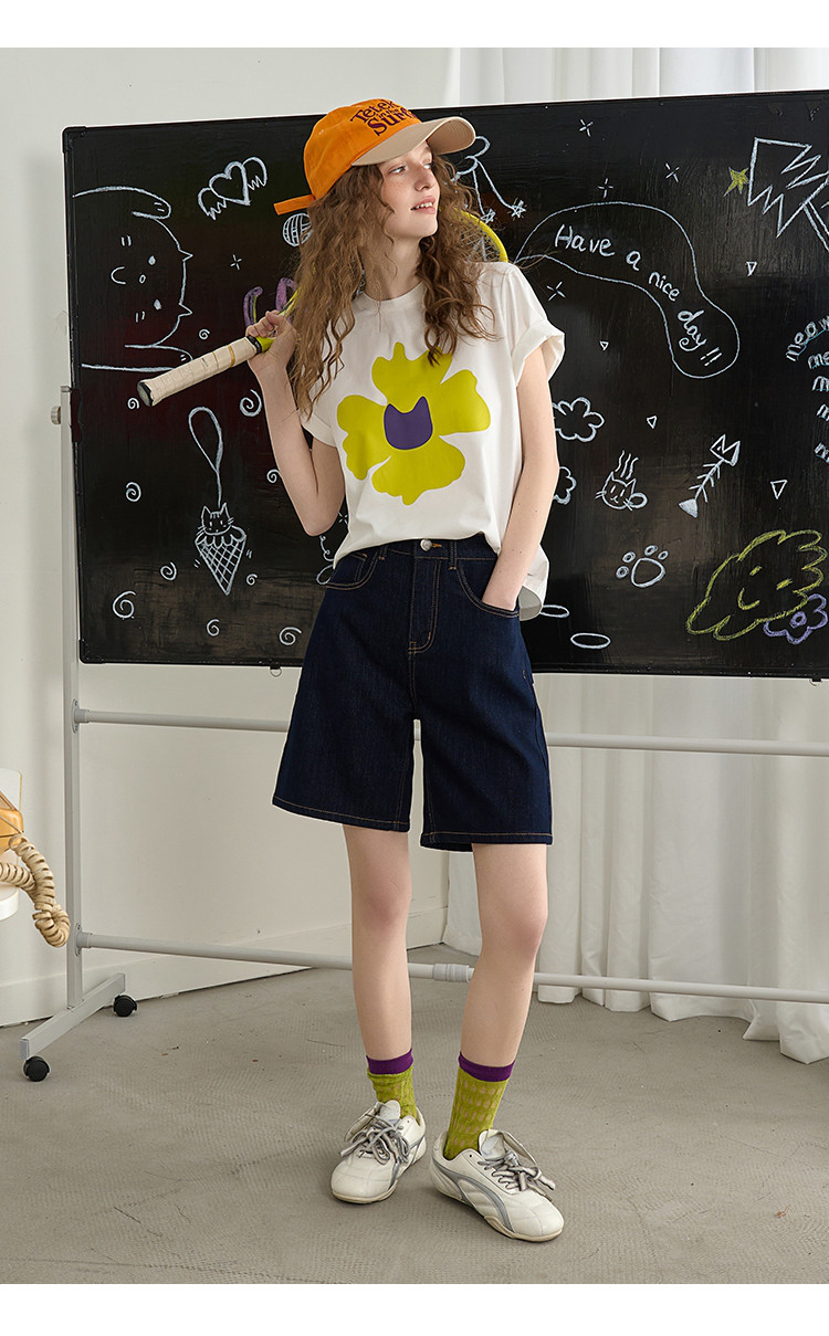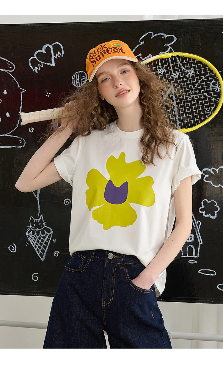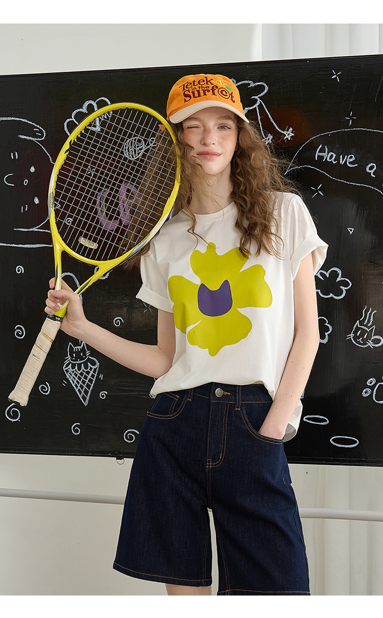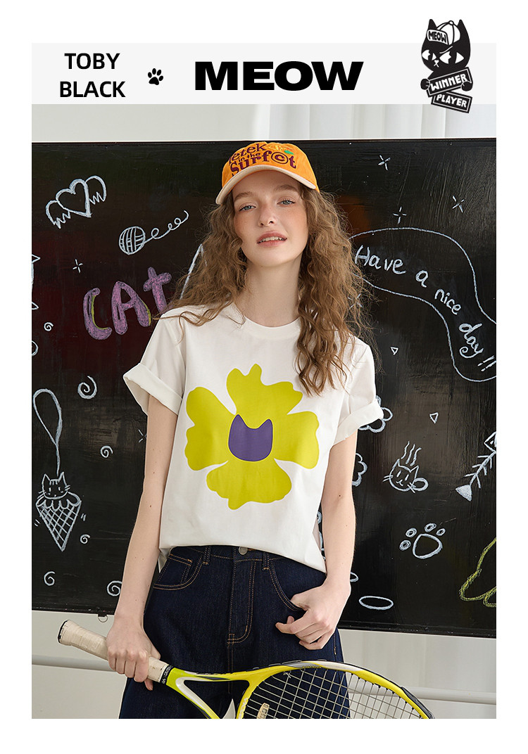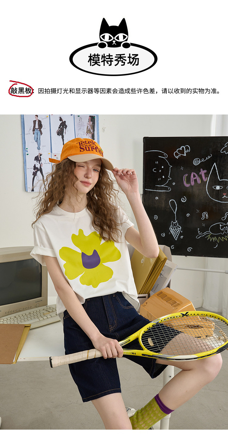 时尚百搭印花宽松显瘦短袖上衣2025夏季简约休闲女式T恤 418653