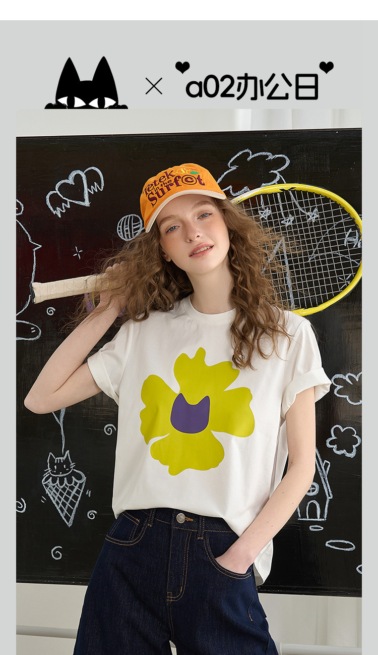 商品名称:时尚百搭印花宽松显瘦短袖上衣2025夏季简约休闲女式T恤 418653