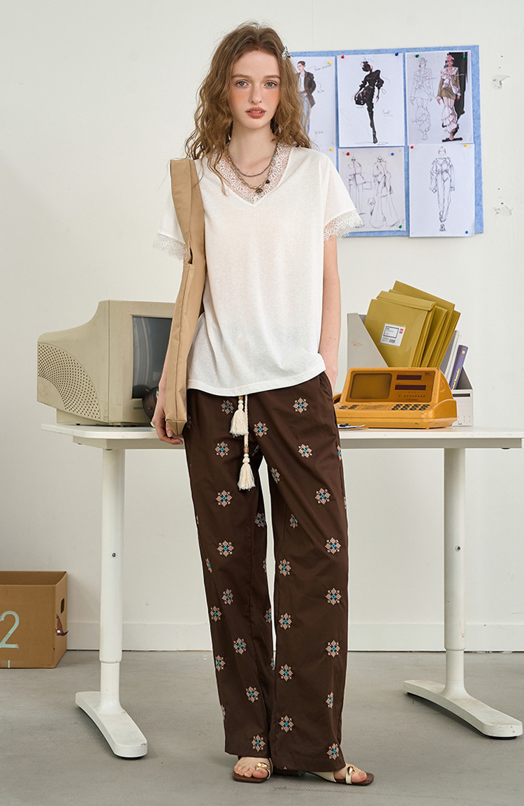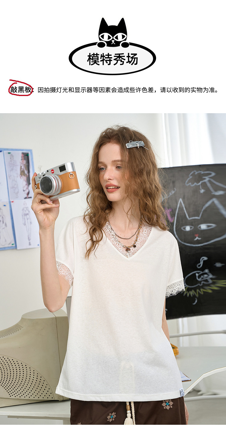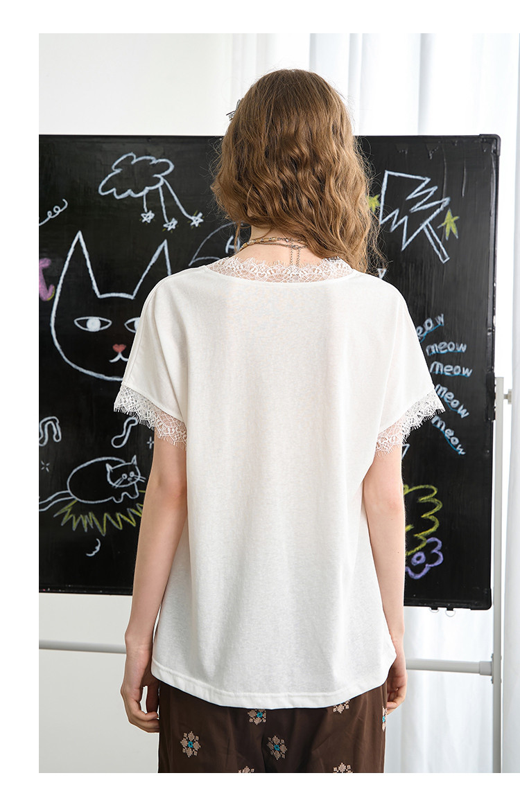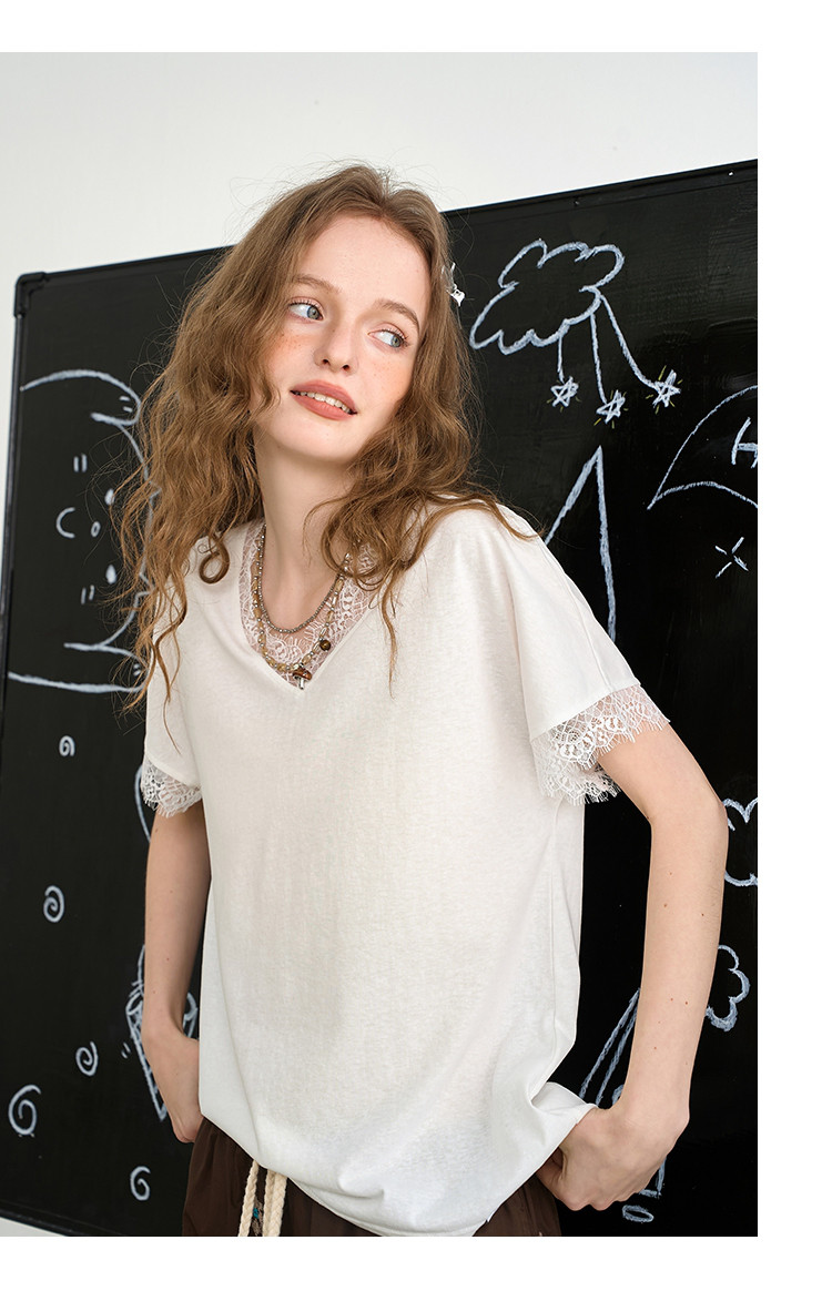 商品名称:法式气质蕾丝花边设计感小个子上衣2025夏季宽松百搭女式T恤 936605