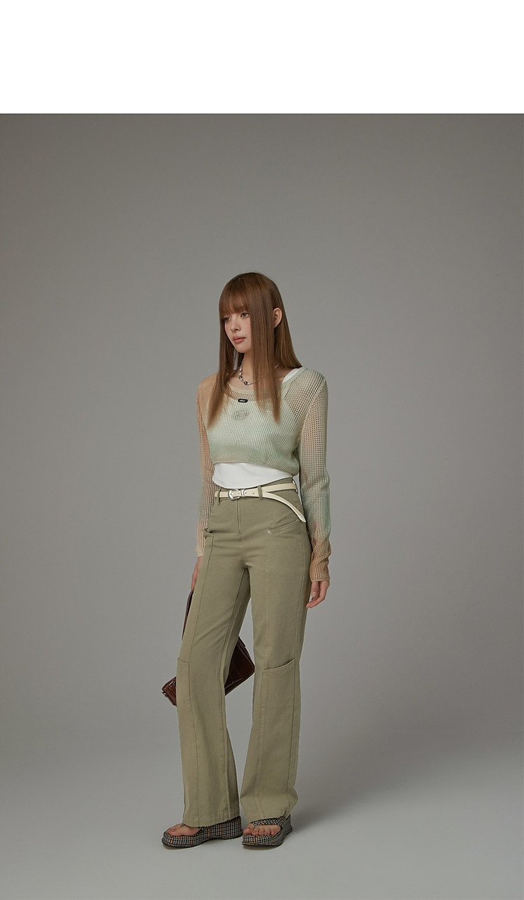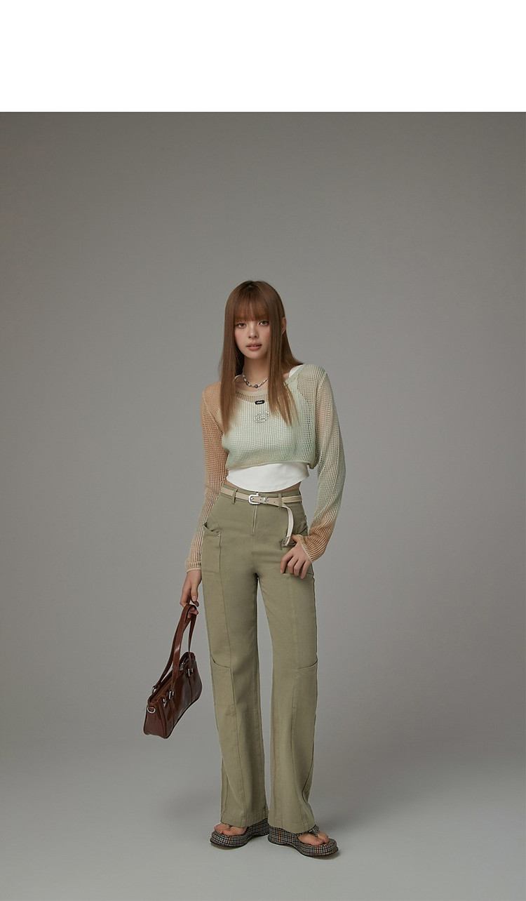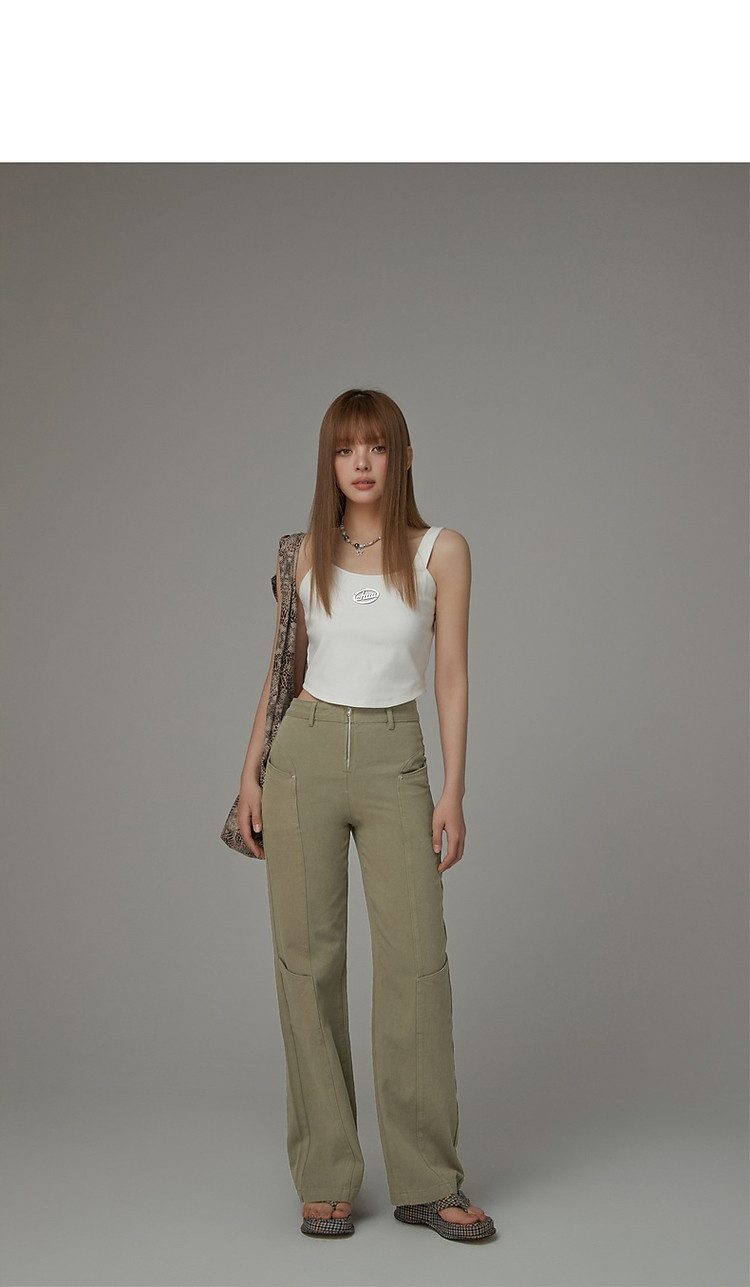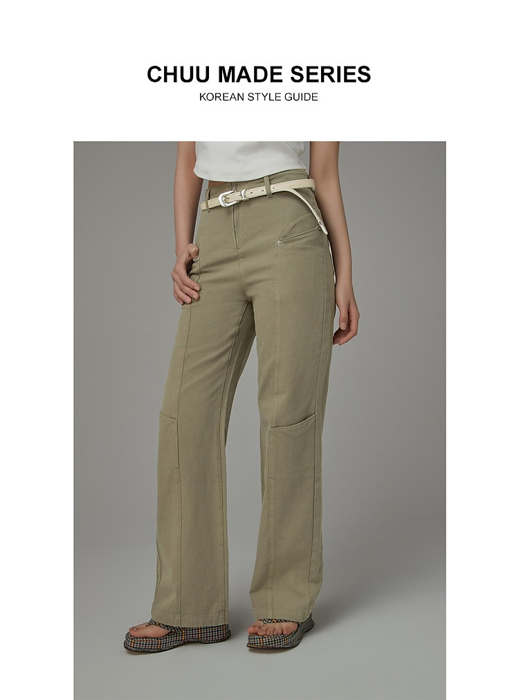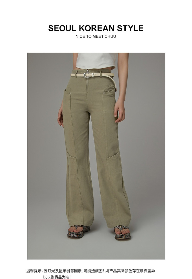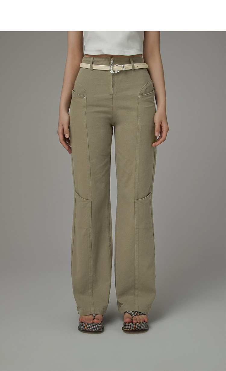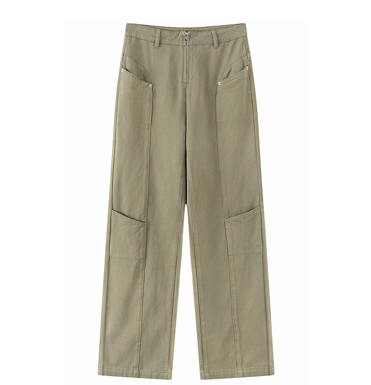 商品名称:多口袋直筒休闲裤女士2025夏高腰拉链百搭工装长裤子 638803