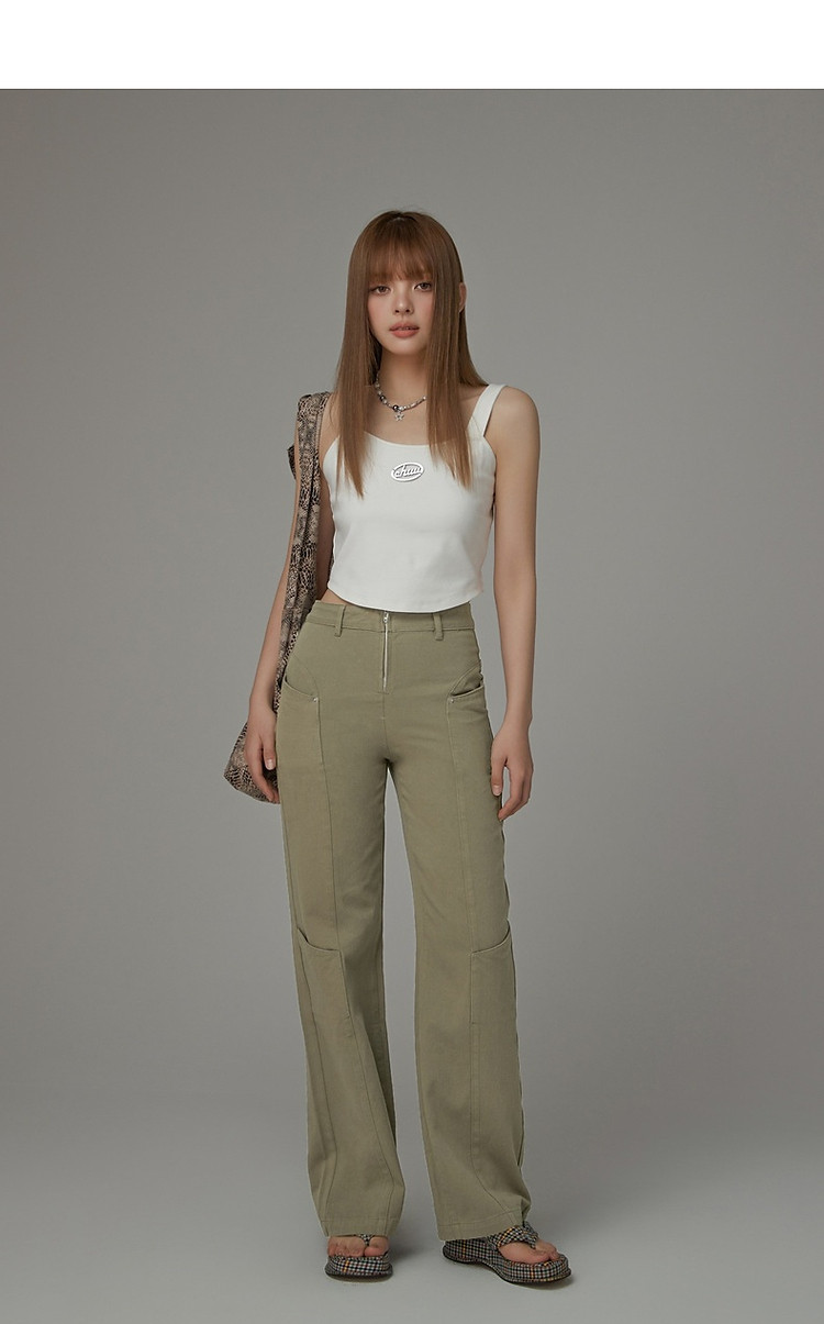 多口袋直筒休闲裤女士2025夏高腰拉链百搭工装长裤子 638803