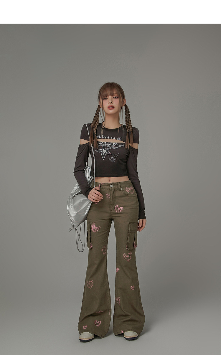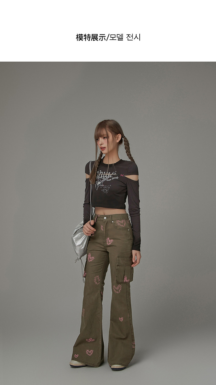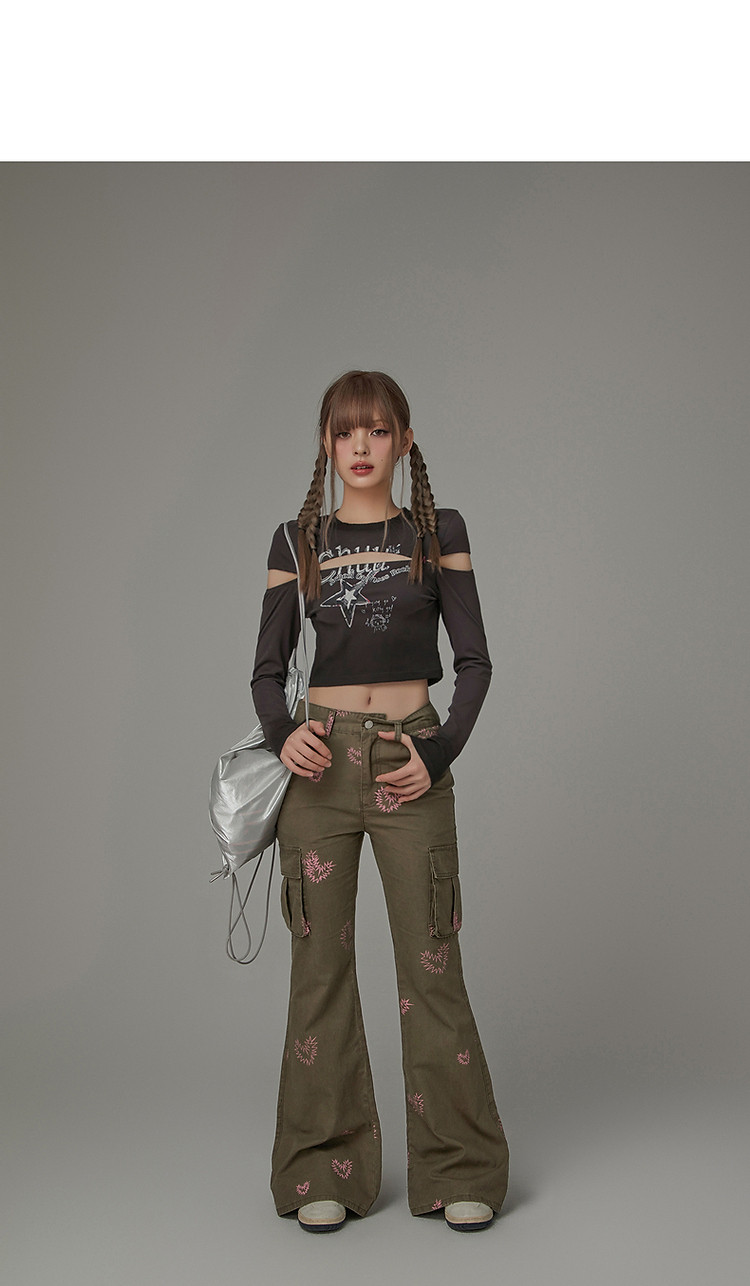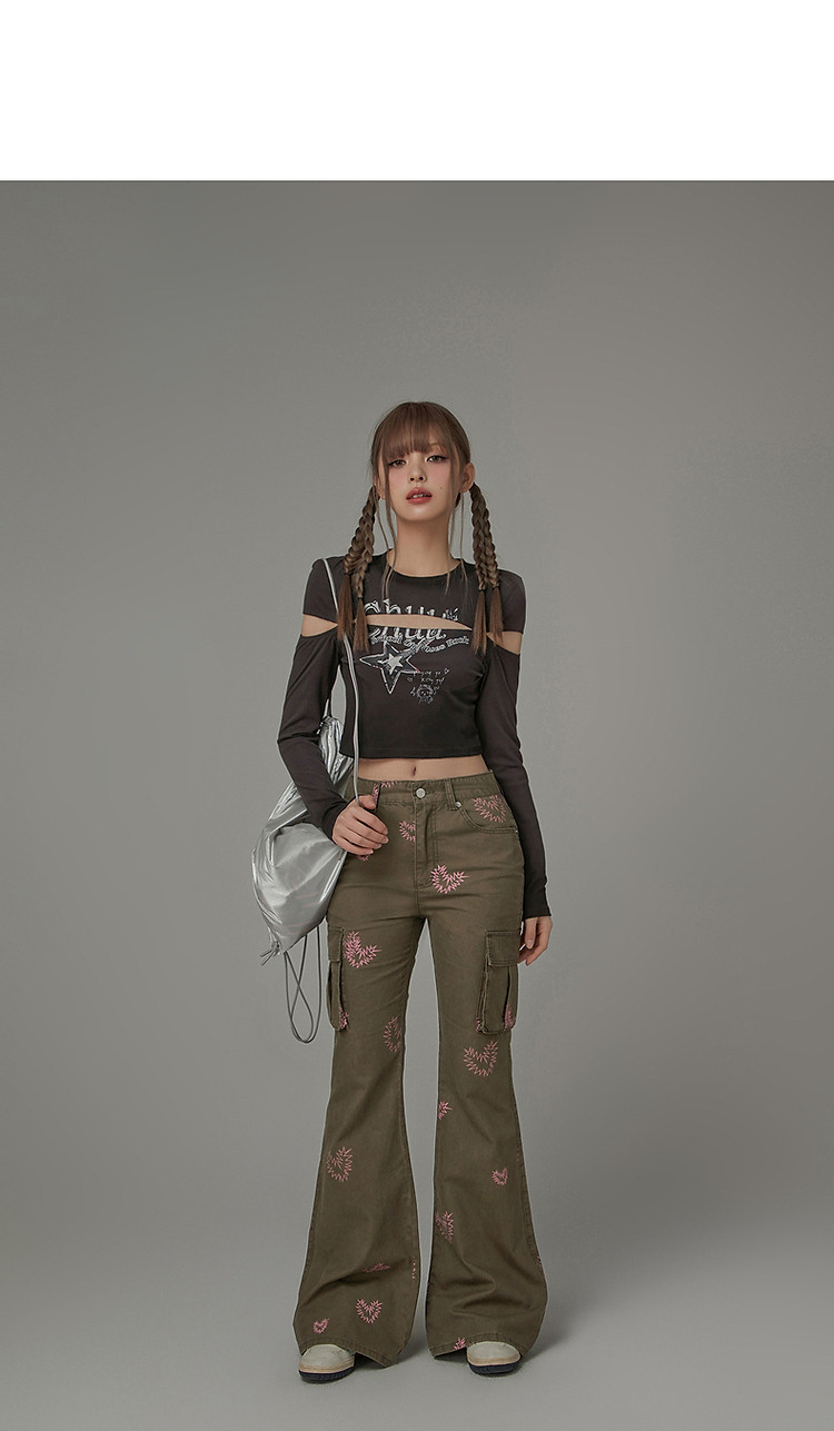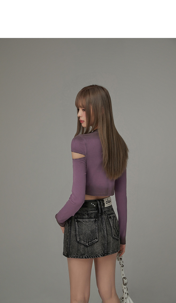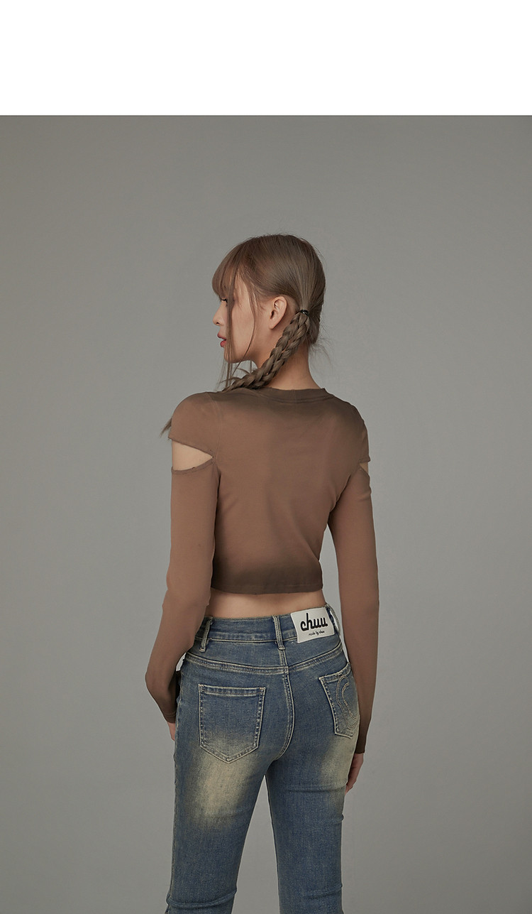 字母卡通印花2025夏镂空渐变色磨破长袖T恤 368147
