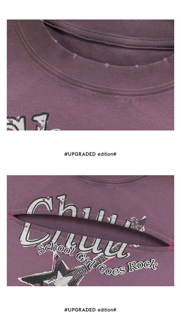 商品名称:字母卡通印花2025夏镂空渐变色磨破长袖T恤 368147