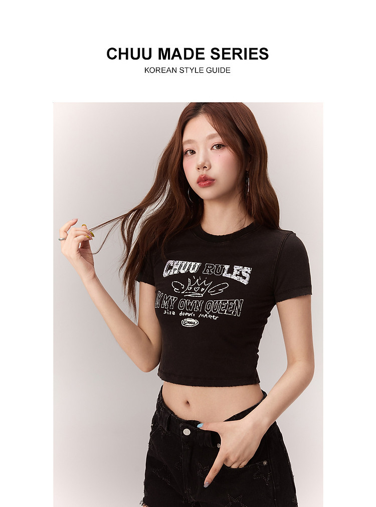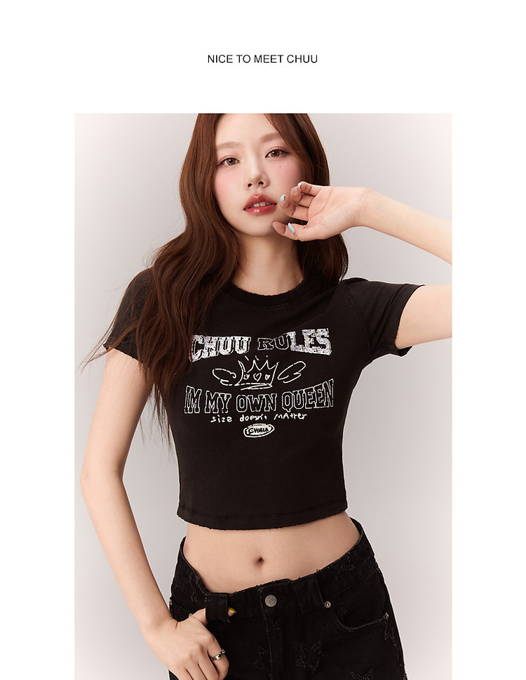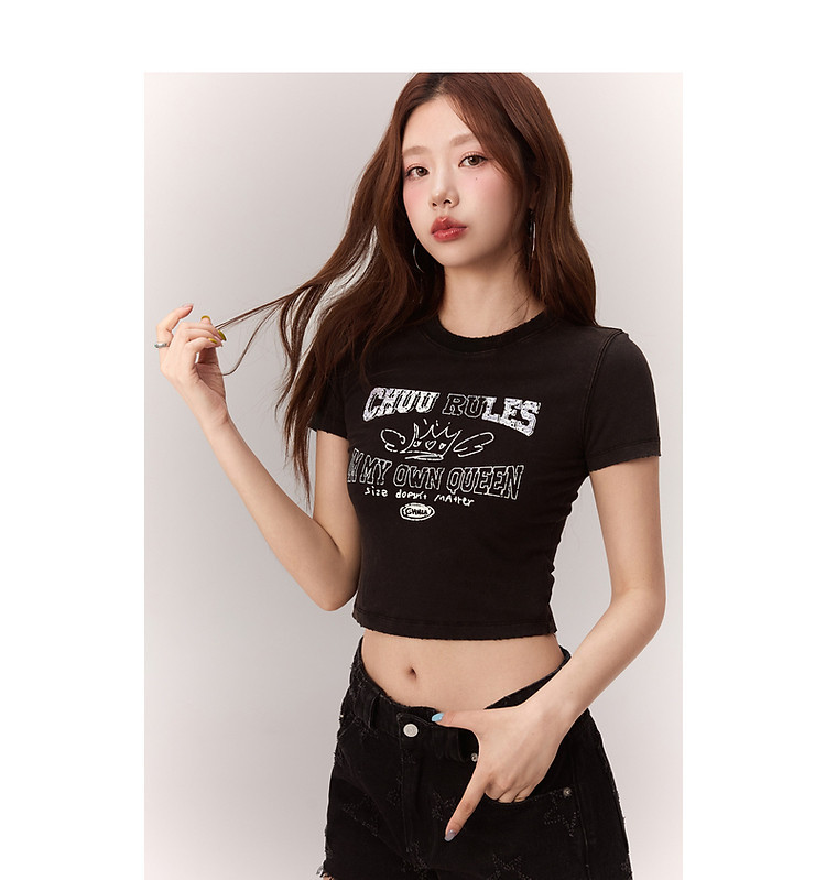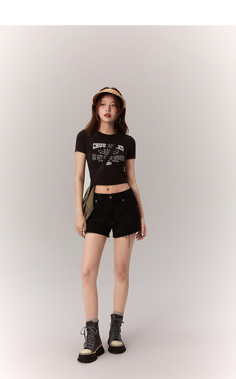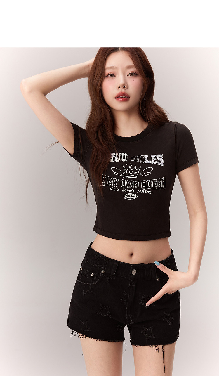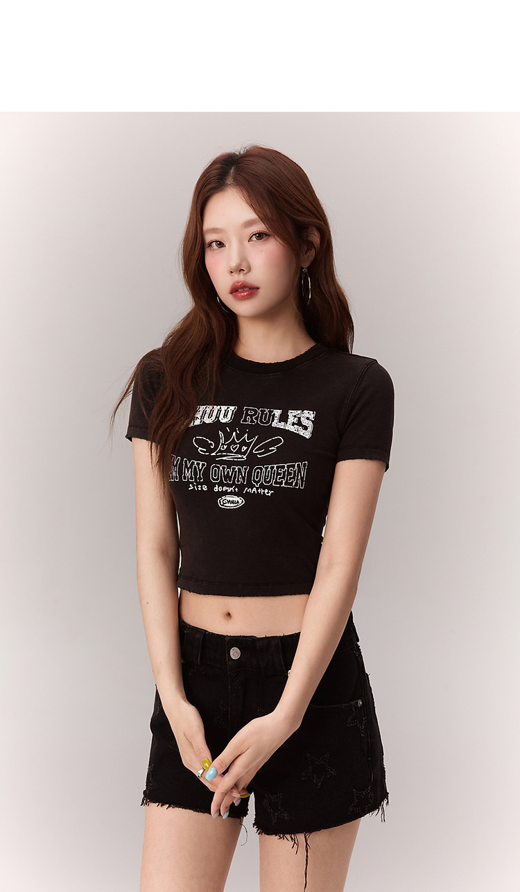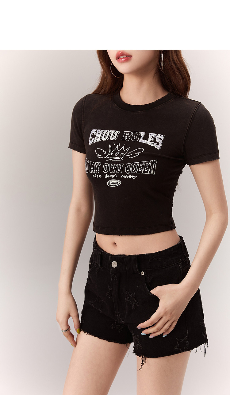 修身字母T恤女2025夏辣妹个性磨破减龄显瘦短款上衣 630227