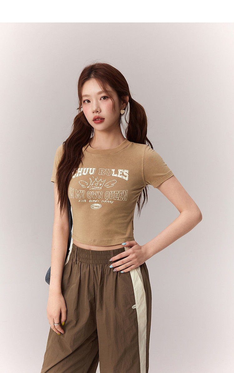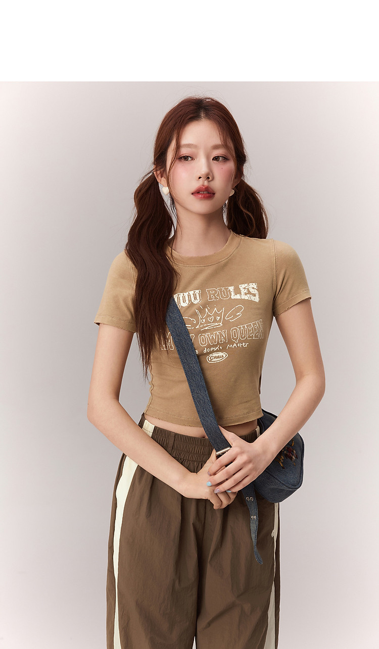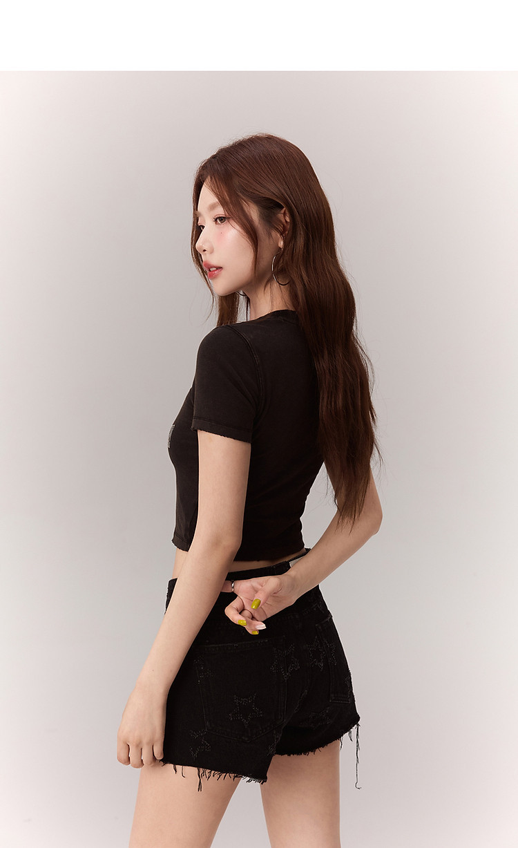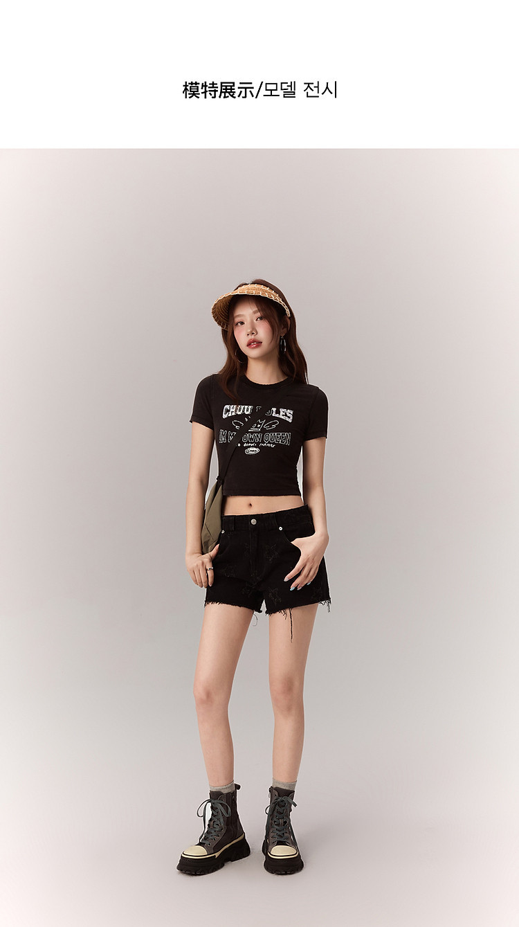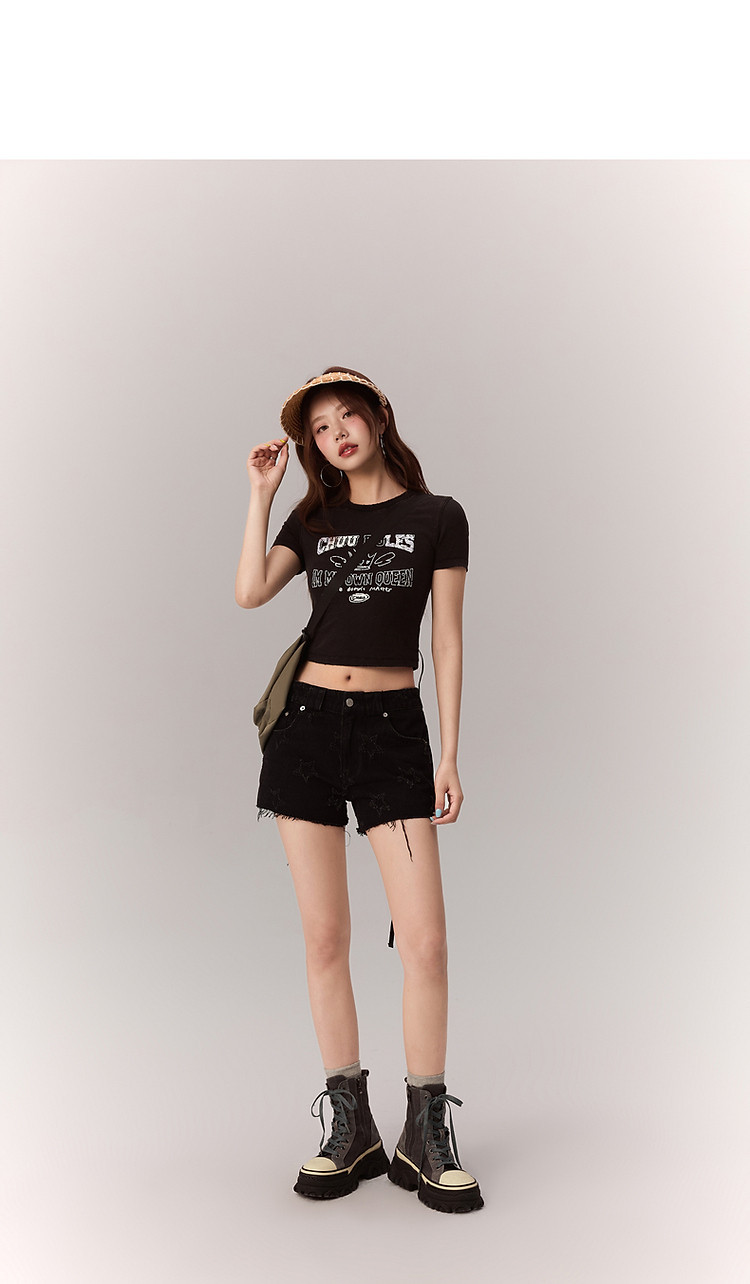 商品名称:修身字母T恤女2025夏辣妹个性磨破减龄显瘦短款上衣 630227