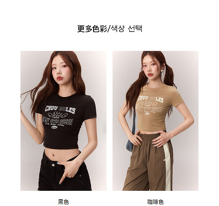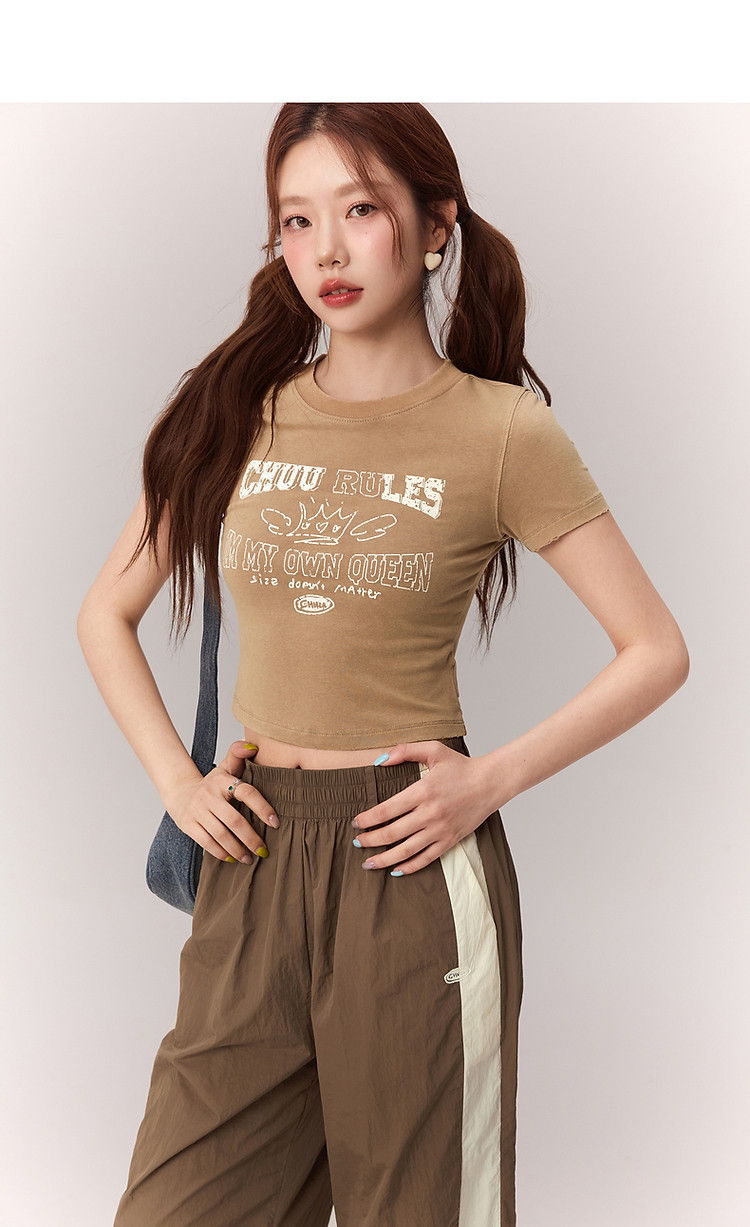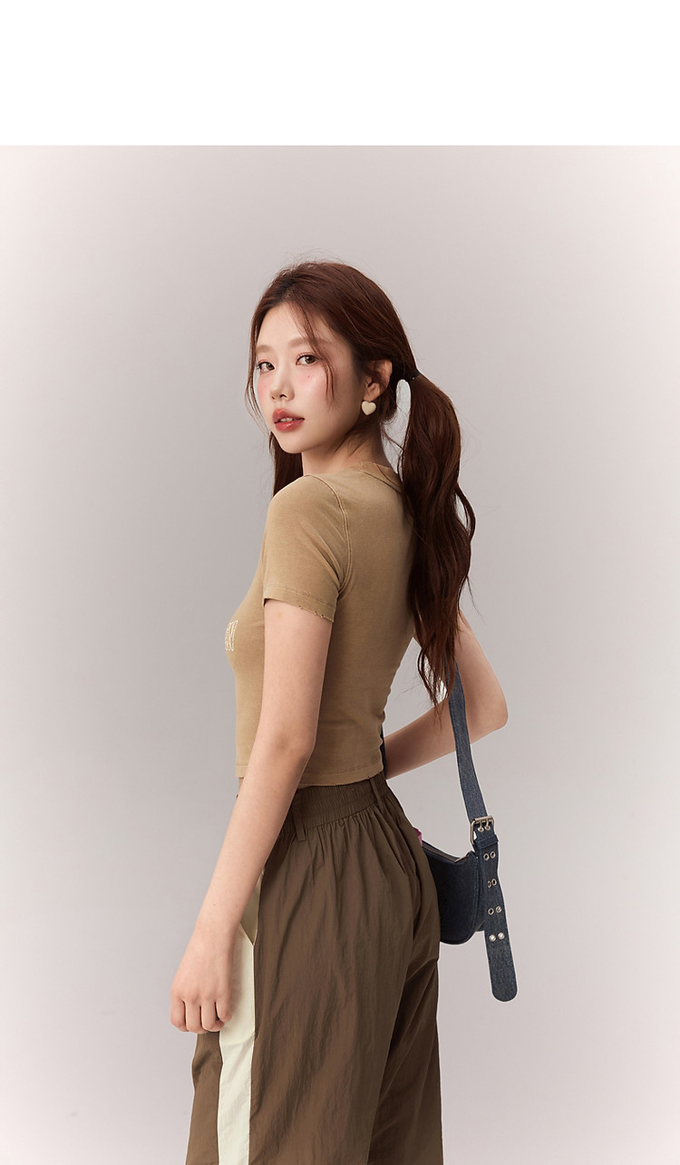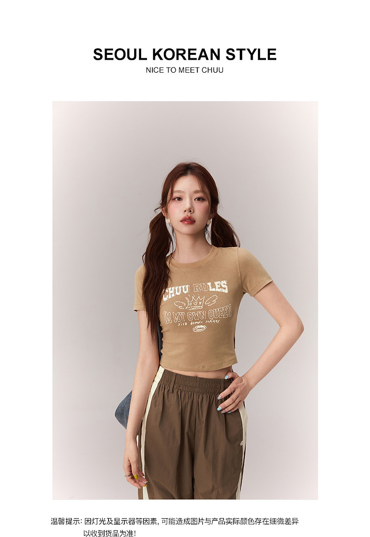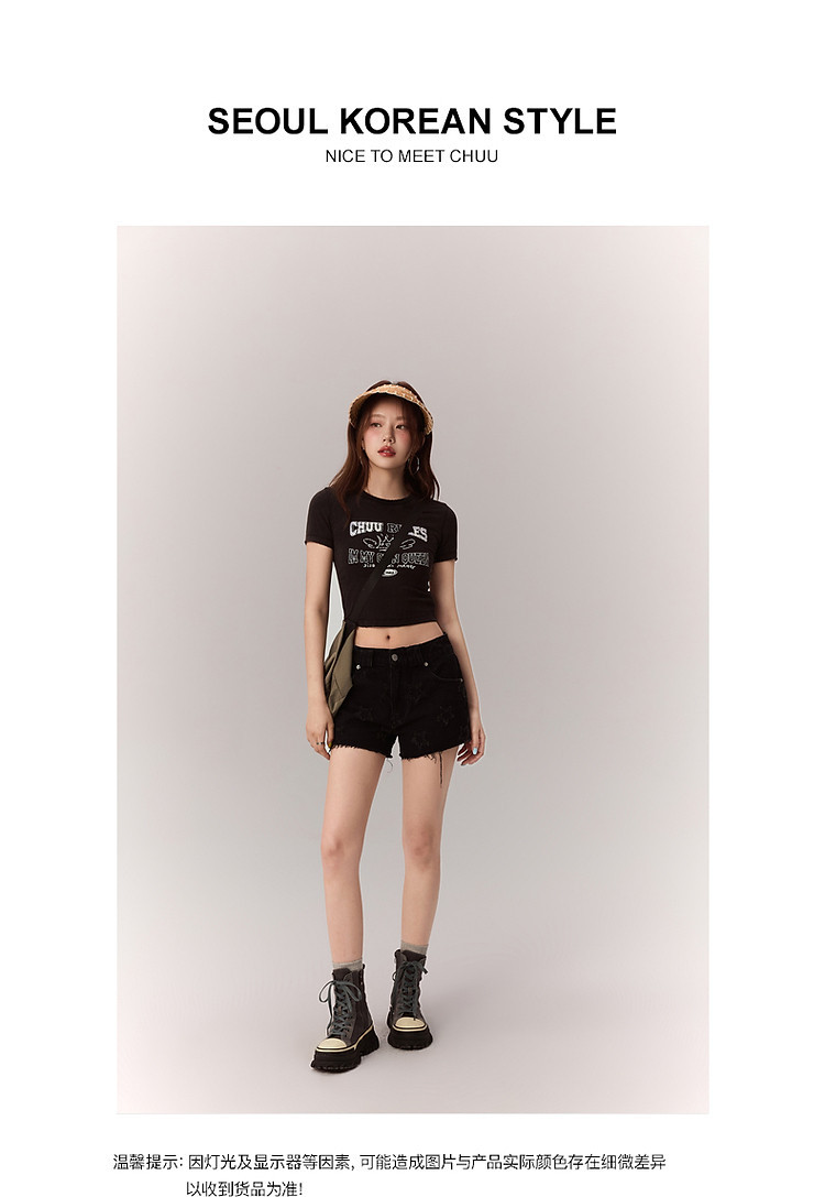 商品名称:修身字母T恤女2025夏辣妹个性磨破减龄显瘦短款上衣 630227