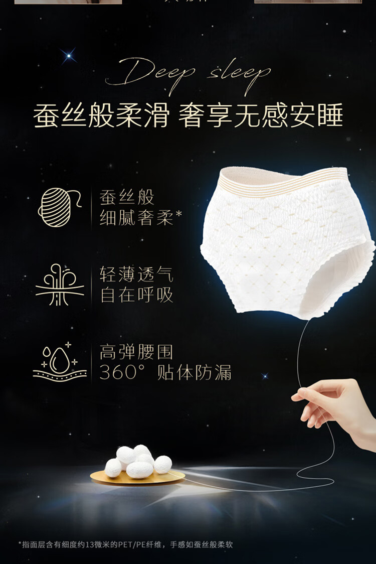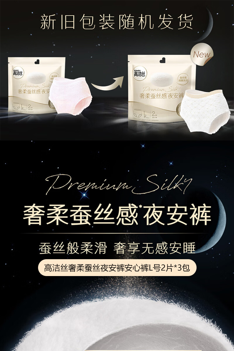 商品名称:kotex/高洁丝奢柔蚕丝夜安裤L号2条*3包