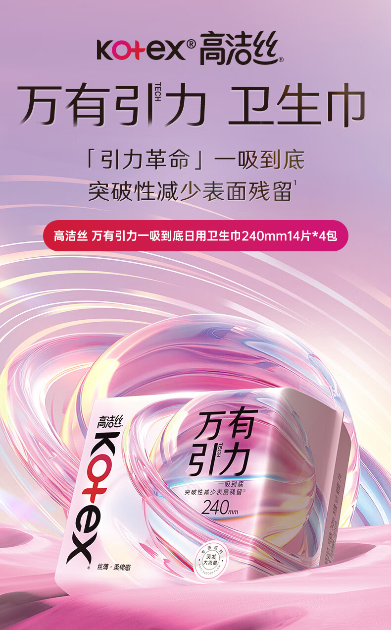 商品名称:kotex/高洁丝万有引力一吸到底240mm日用卫生巾14片*4包