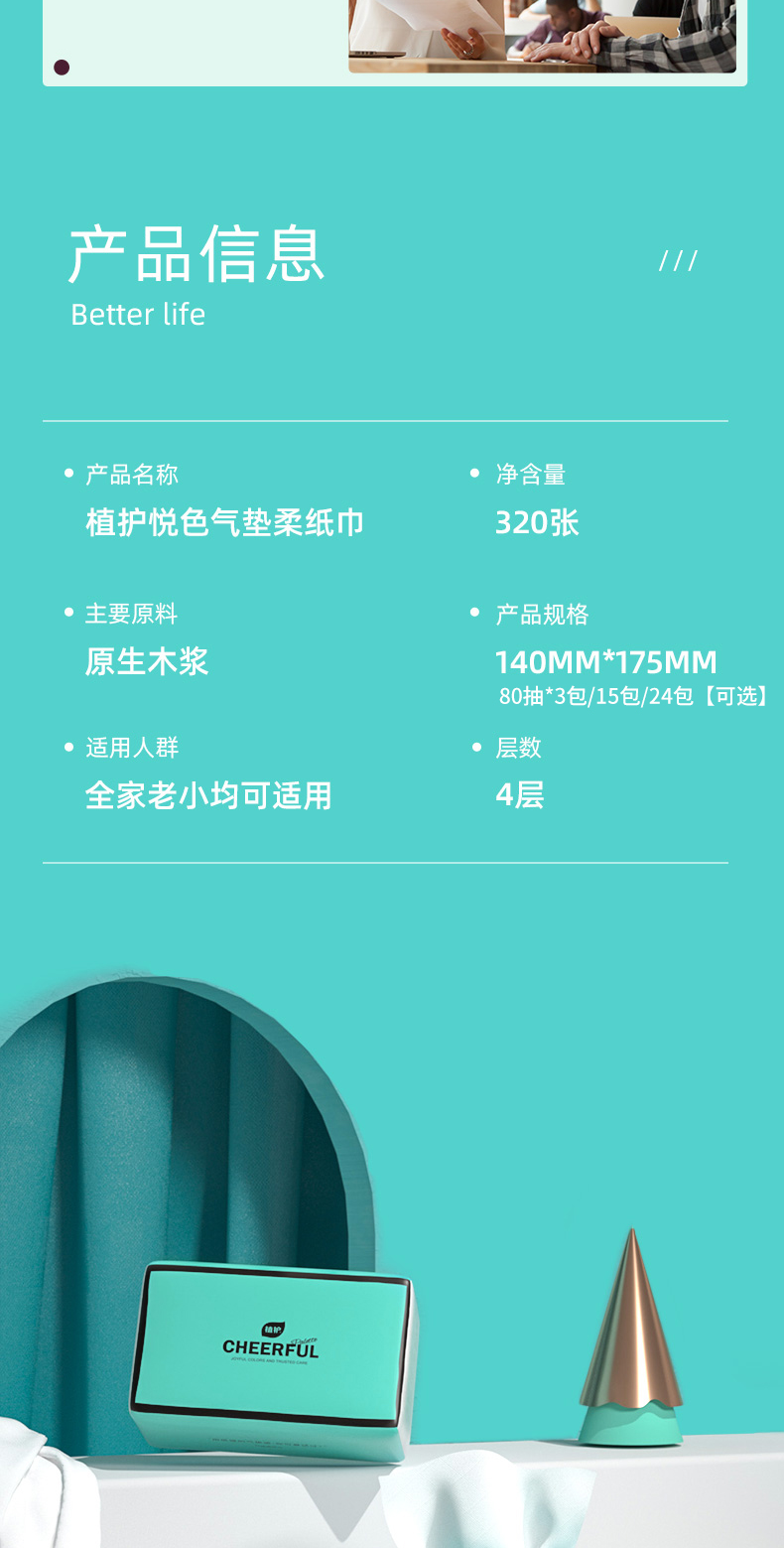 商品名称:植护悦色气垫柔纸巾4层80抽