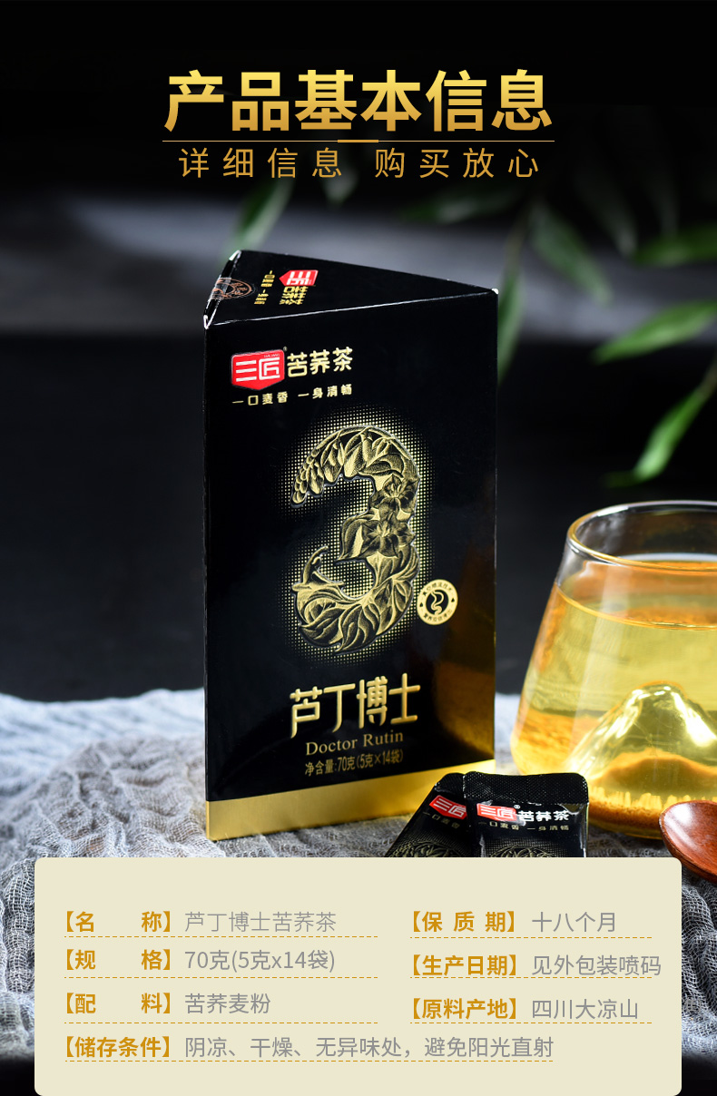 商品名称:三匠芦丁博士苦荞茶70g*3盒