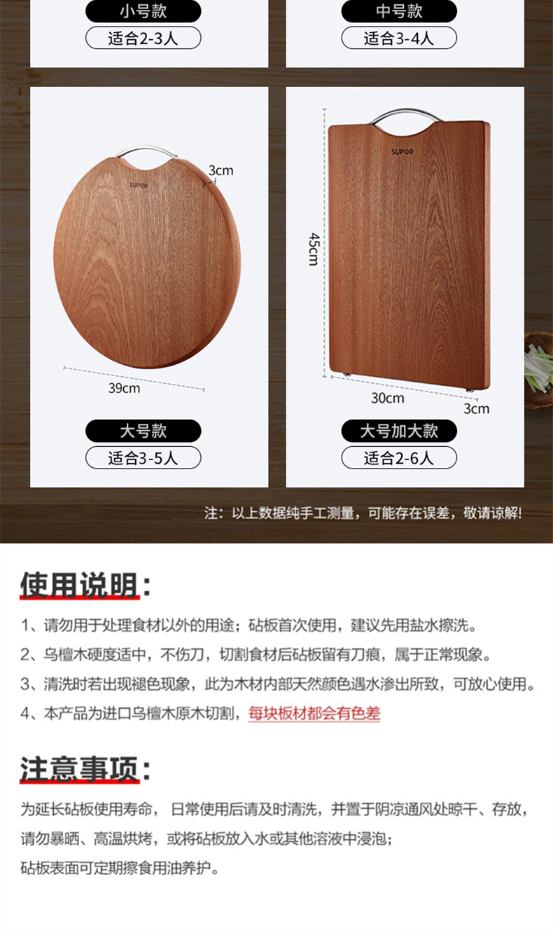 商品名称:SUPOR/苏泊尔乌檀木整木砧板