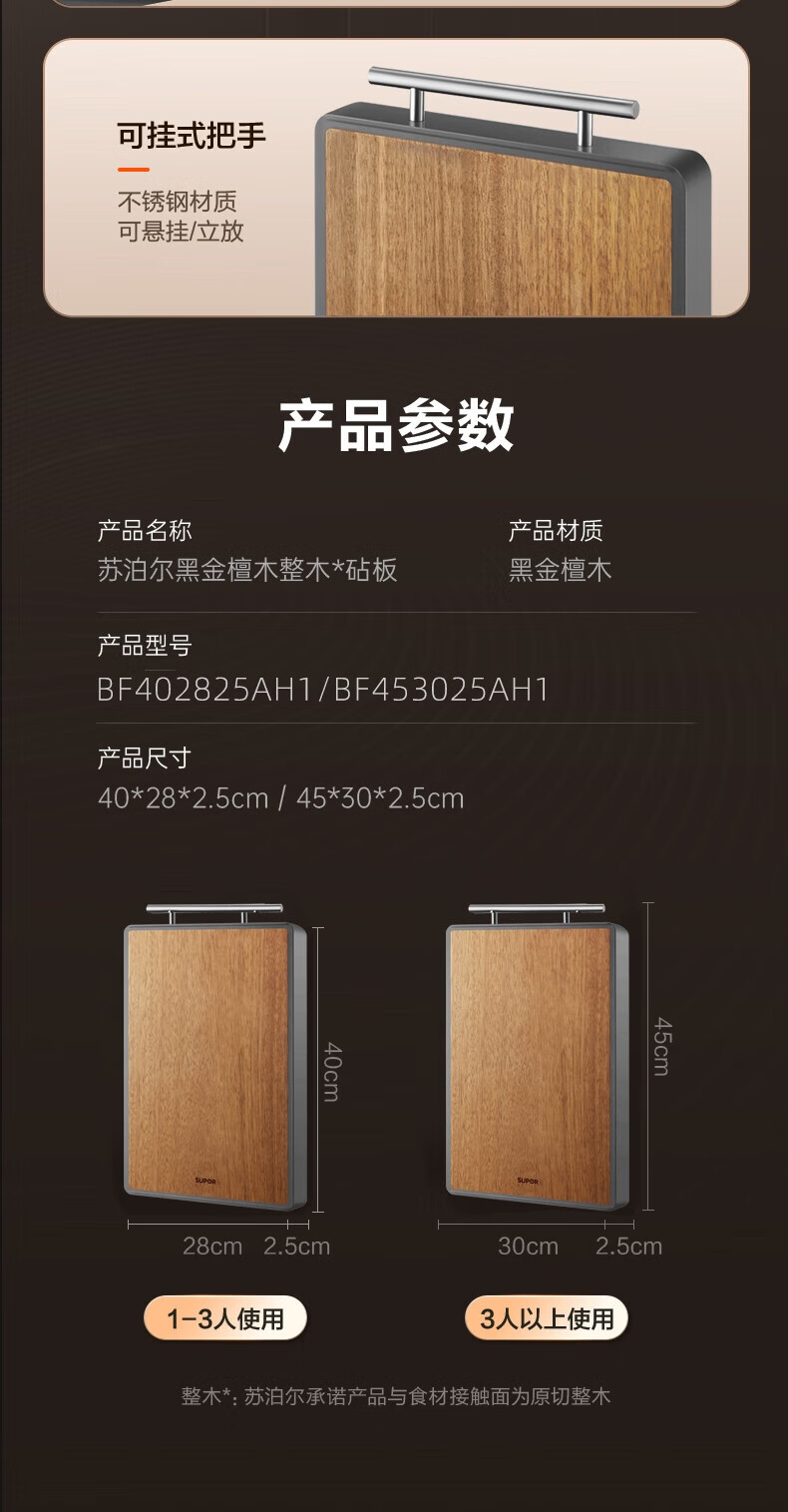 商品名称:SUPOR/苏泊尔黑金檀木整木砧板