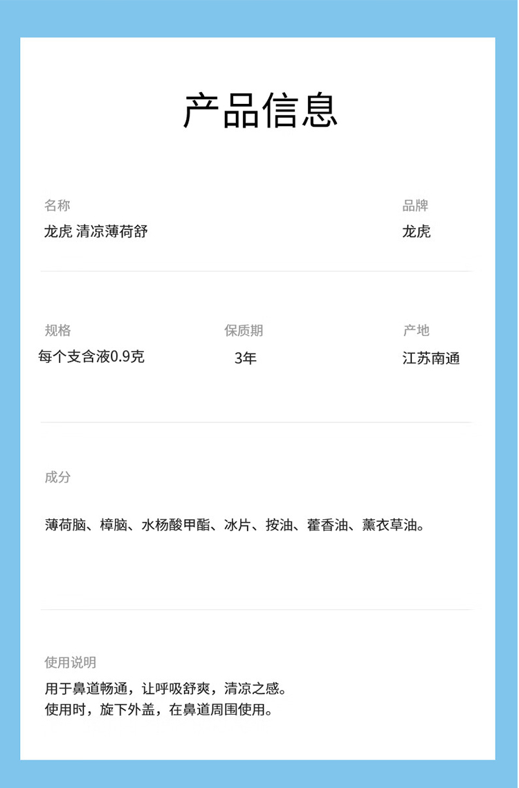 商品名称:龙虎冰凉三件套