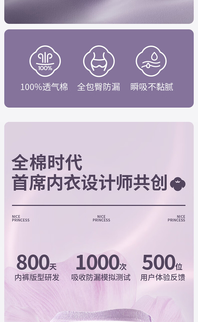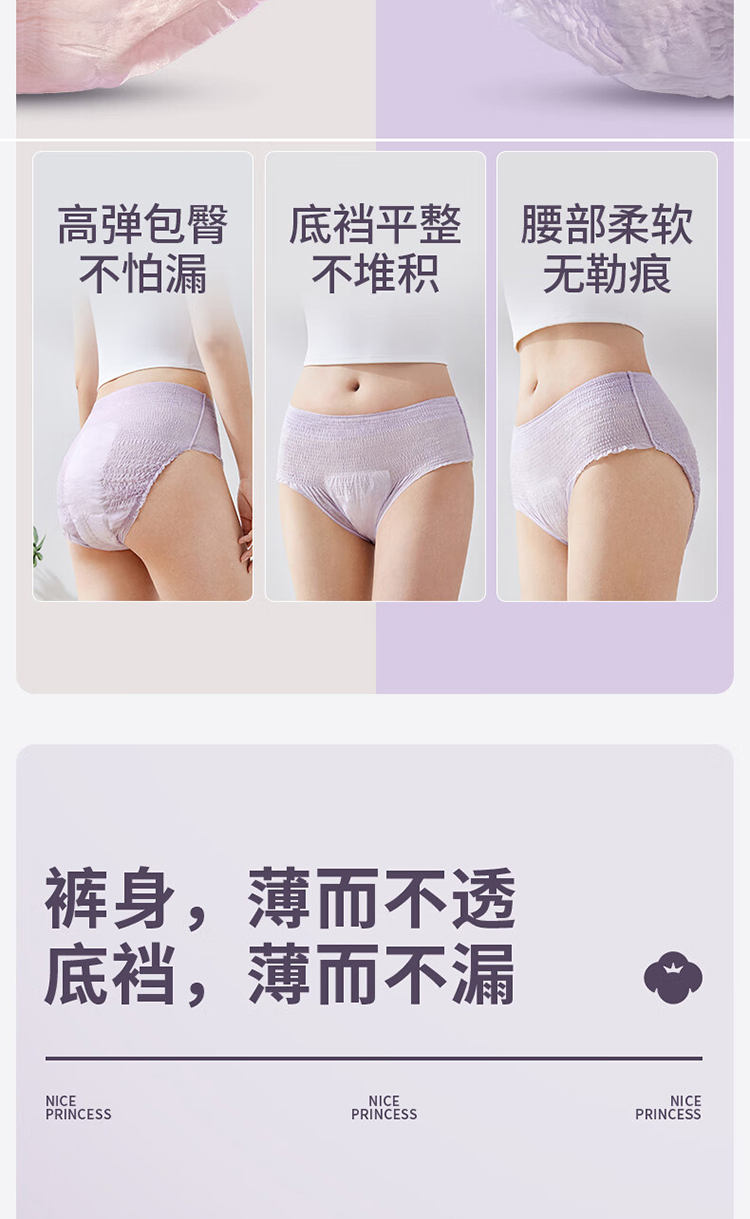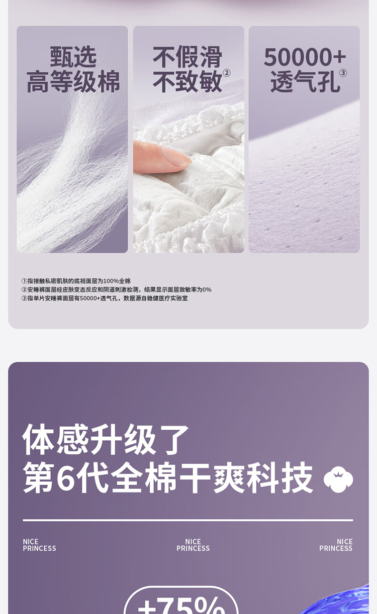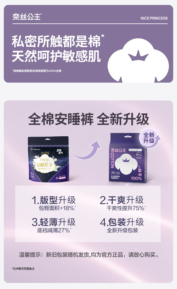 商品名称:Purcotton/全棉时代奈丝公主安睡超薄透安心裤M-L码2片*6袋