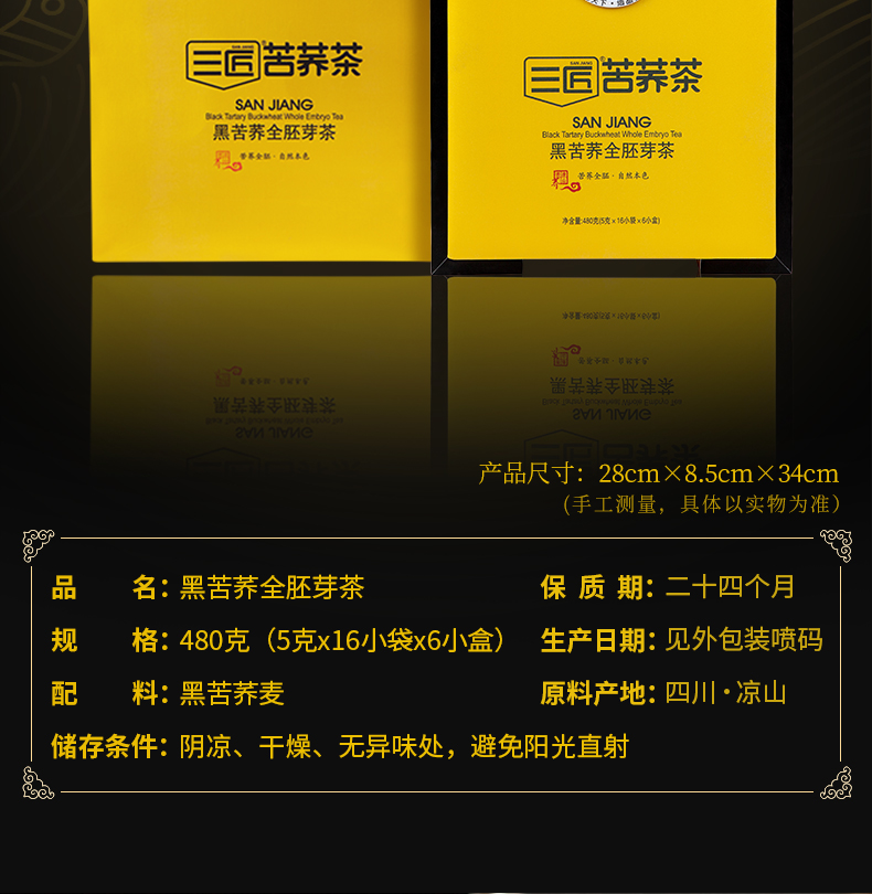 商品名称:三匠黑苦荞全胚芽茶品冠礼盒480g