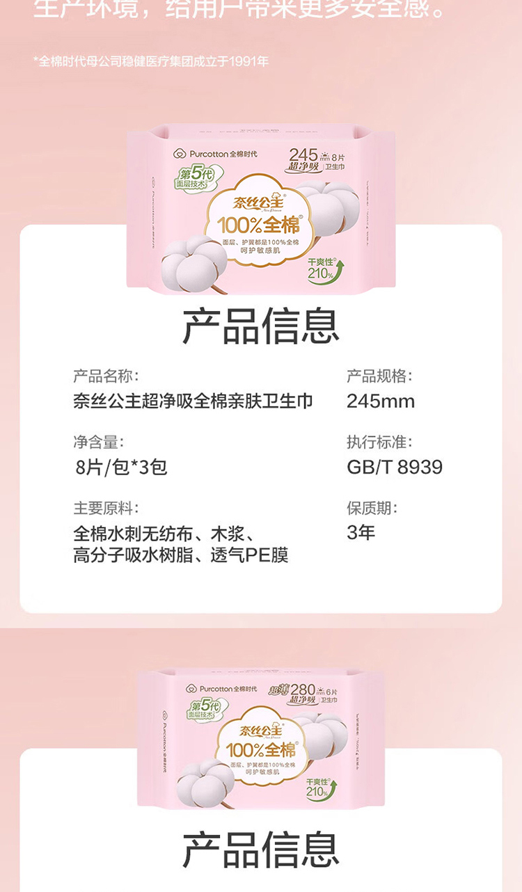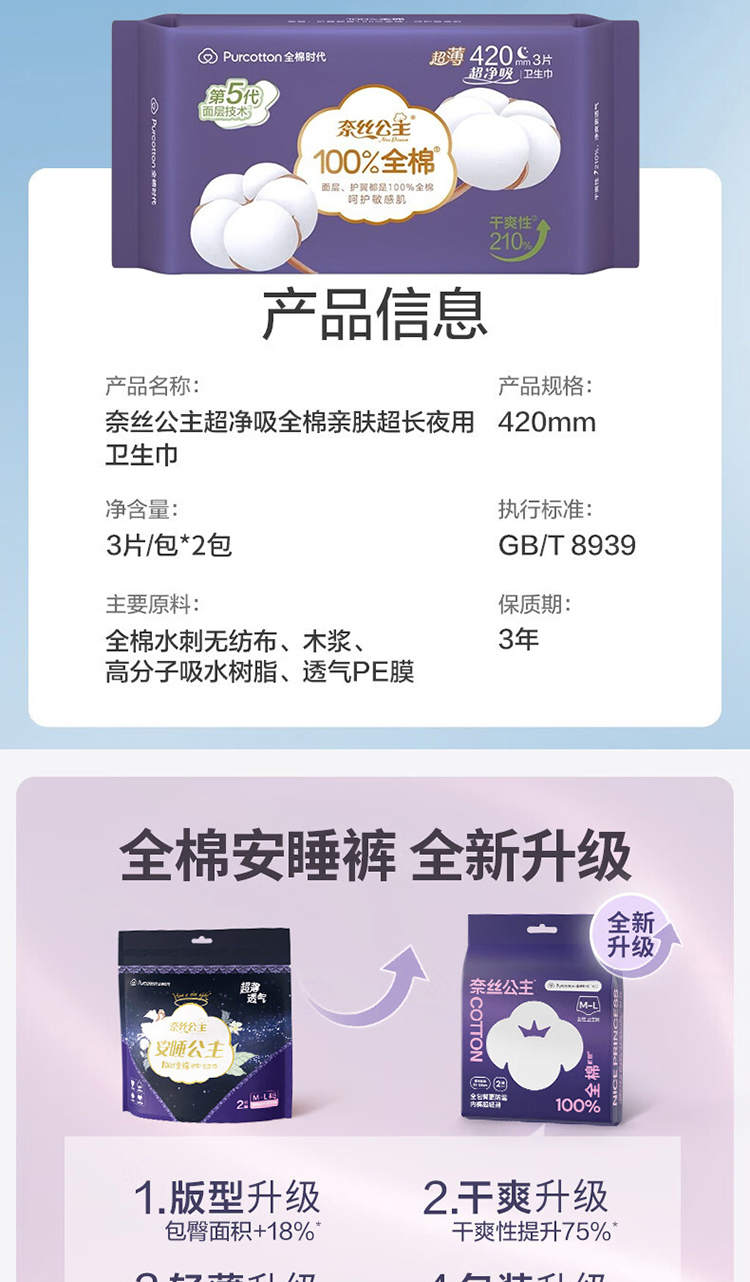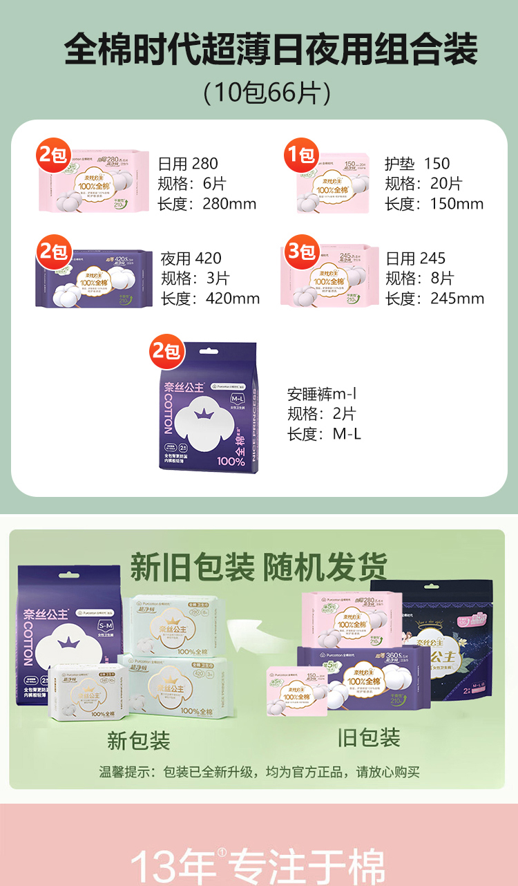 商品名称:Purcotton/全棉时代超薄日夜用卫生巾组合装66片