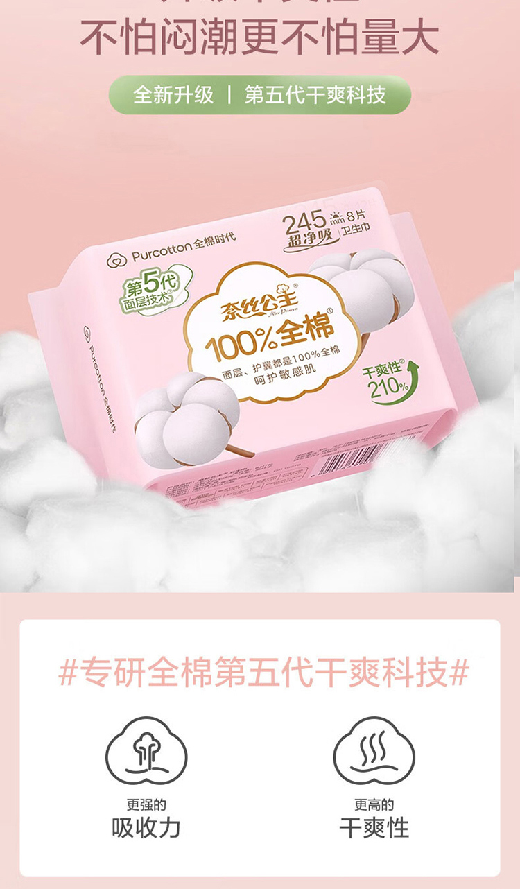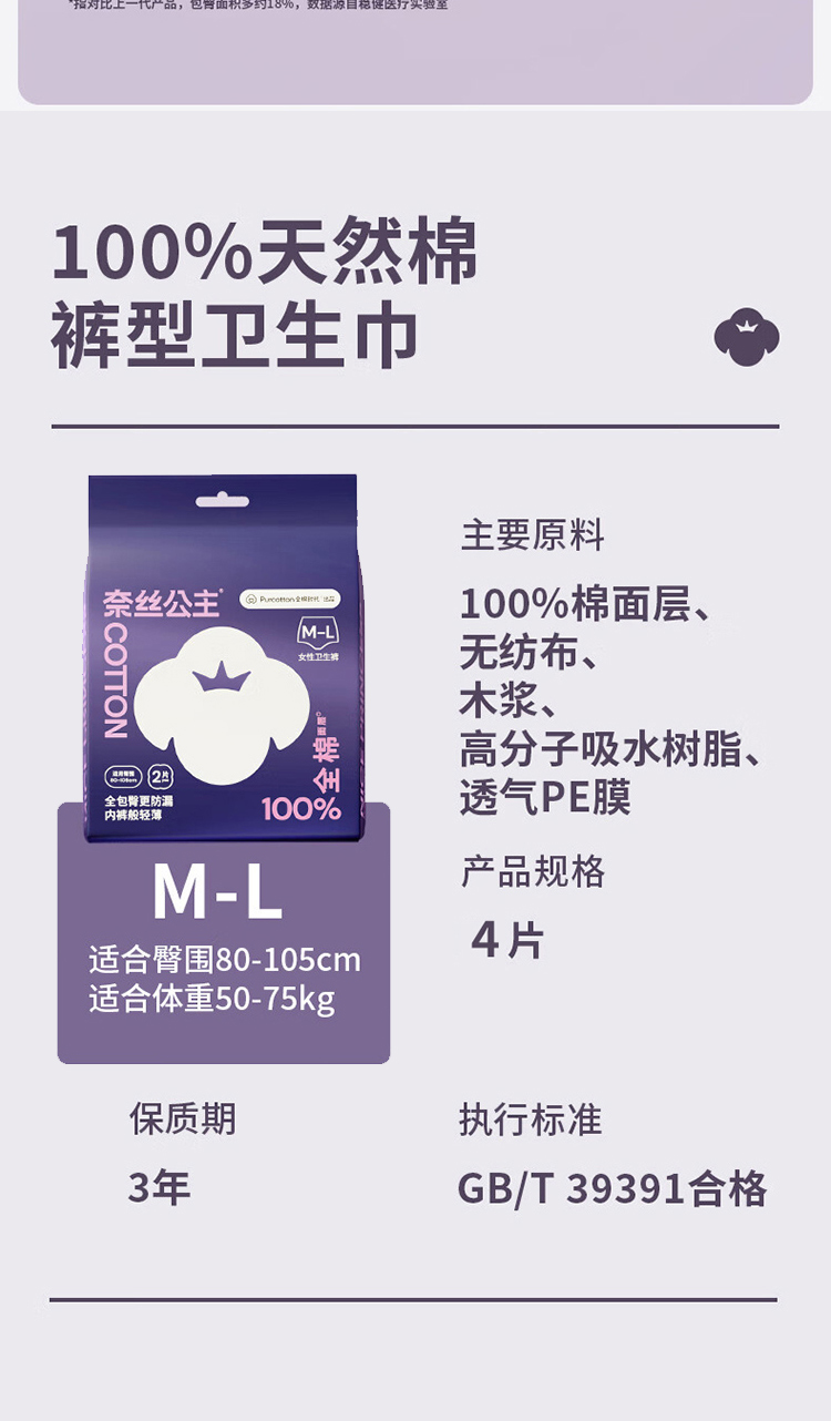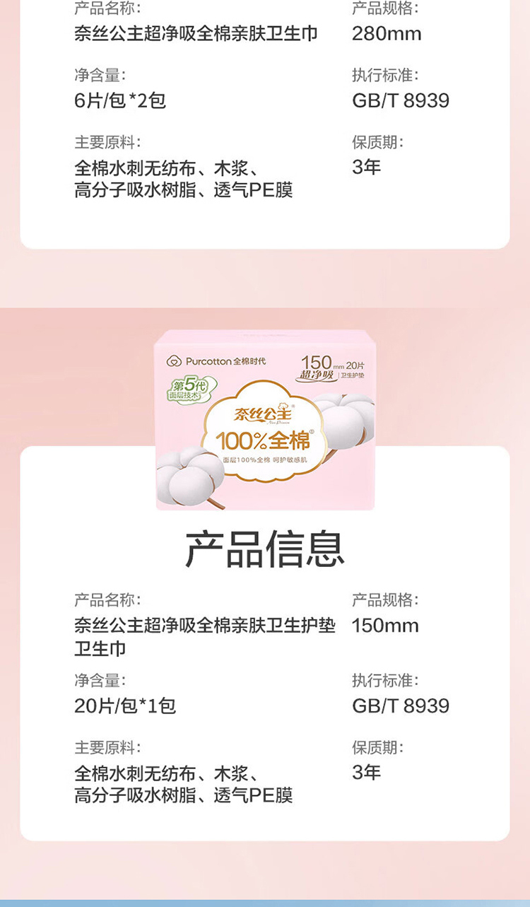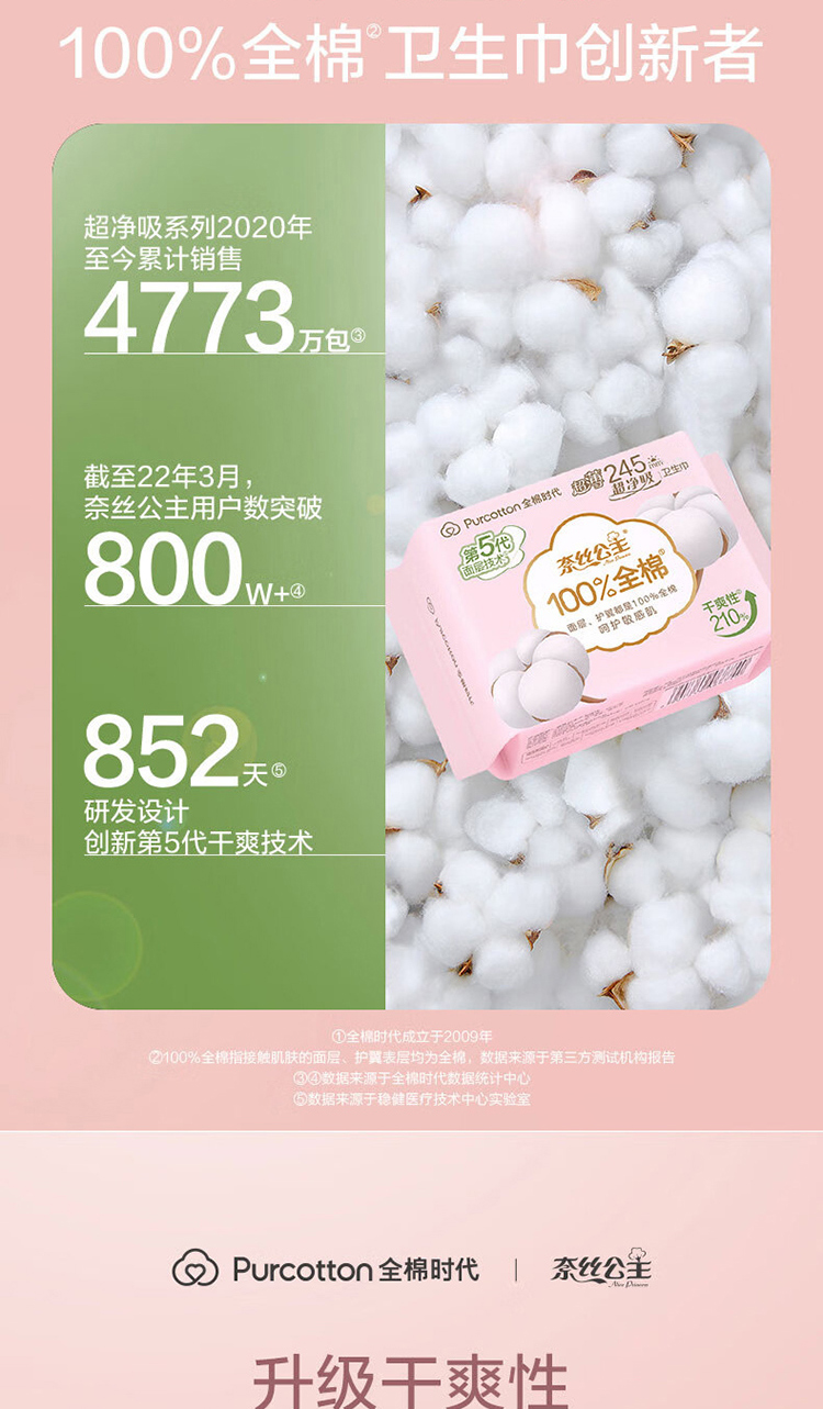 商品名称:Purcotton/全棉时代超薄日夜用卫生巾组合装66片