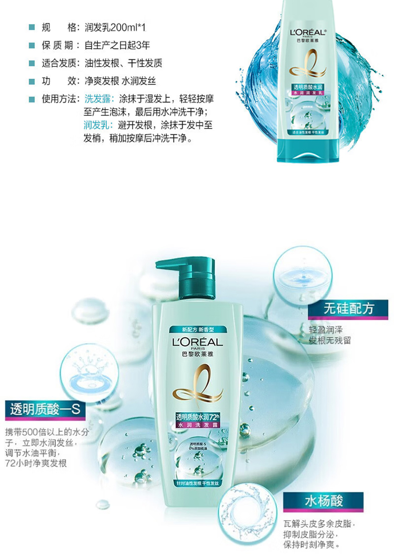 商品名称:L'OREAL/欧莱雅柔泽洗护礼盒OLY05