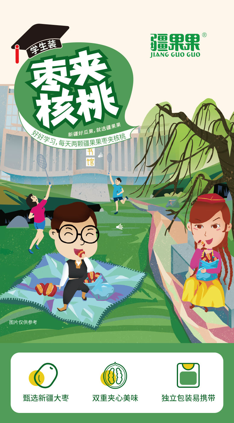 商品名称:疆果果学生装枣夹核桃280g*2袋