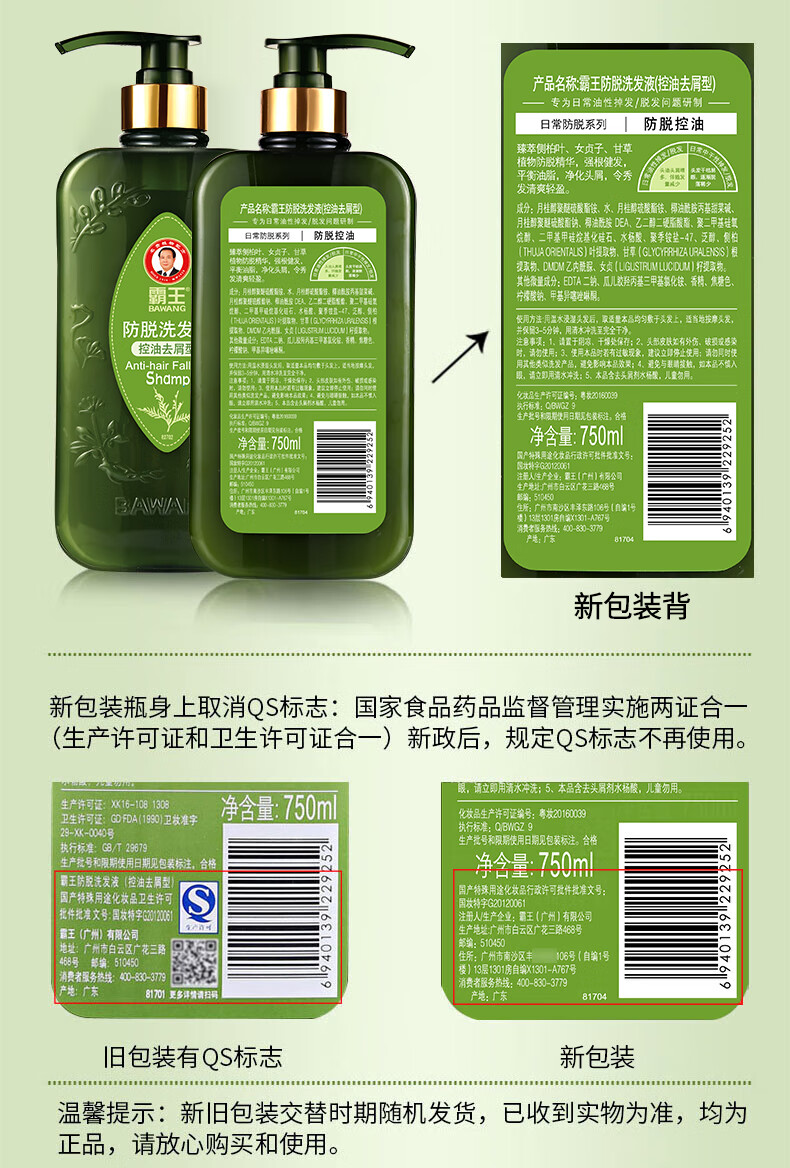 商品名称:霸王防脱控油去屑型洗发液750ml