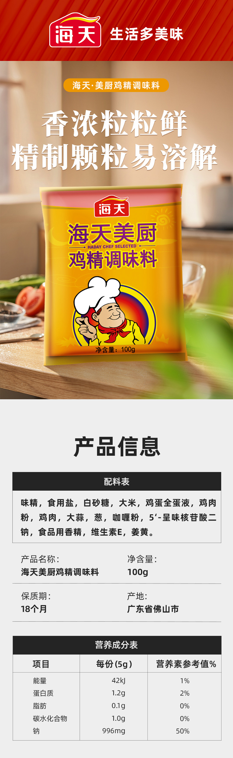 商品名称:海天美厨鸡精调味料100g*3袋