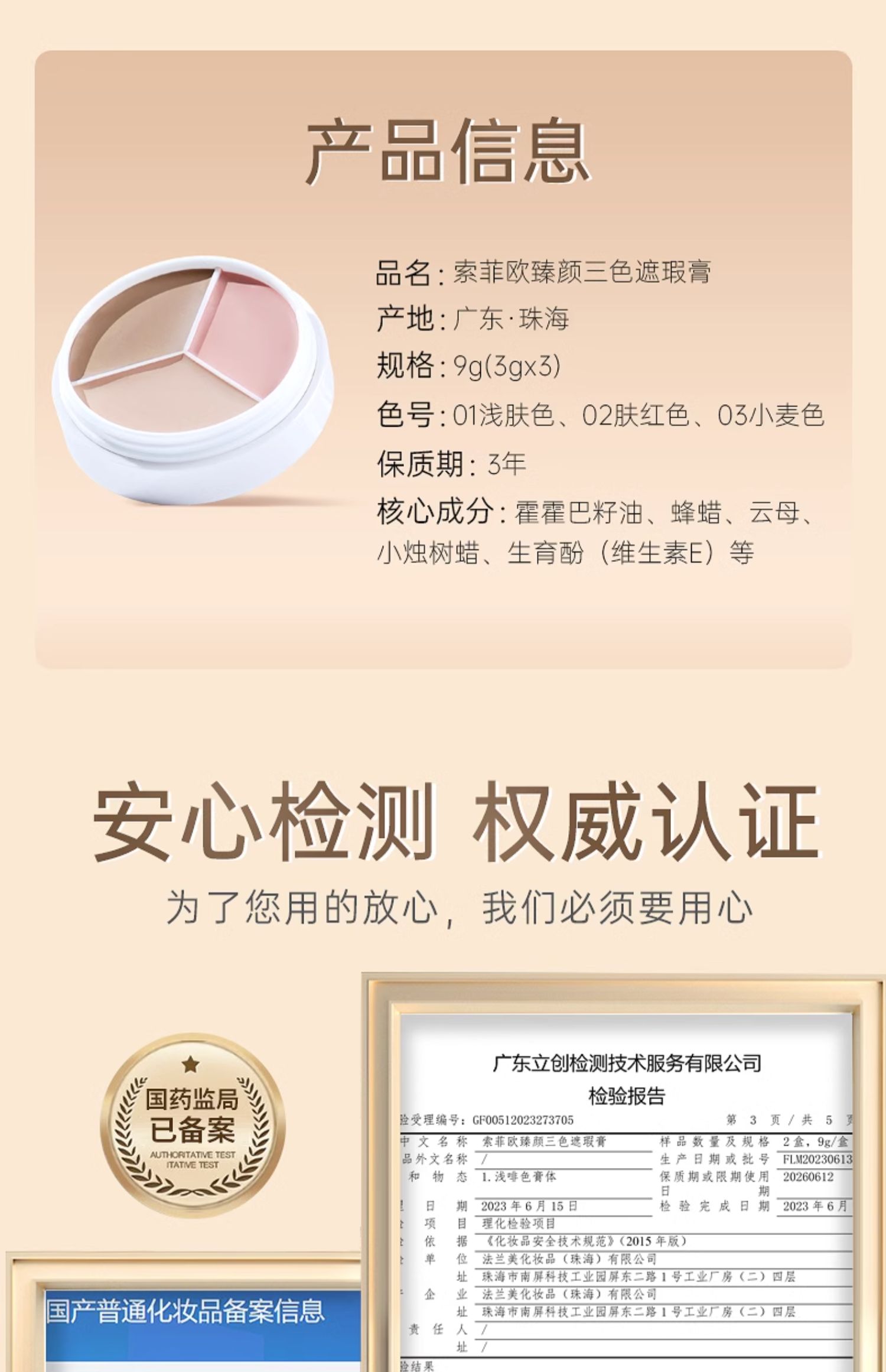 商品名称:SOFFIO/索菲欧臻颜三色遮瑕膏9g