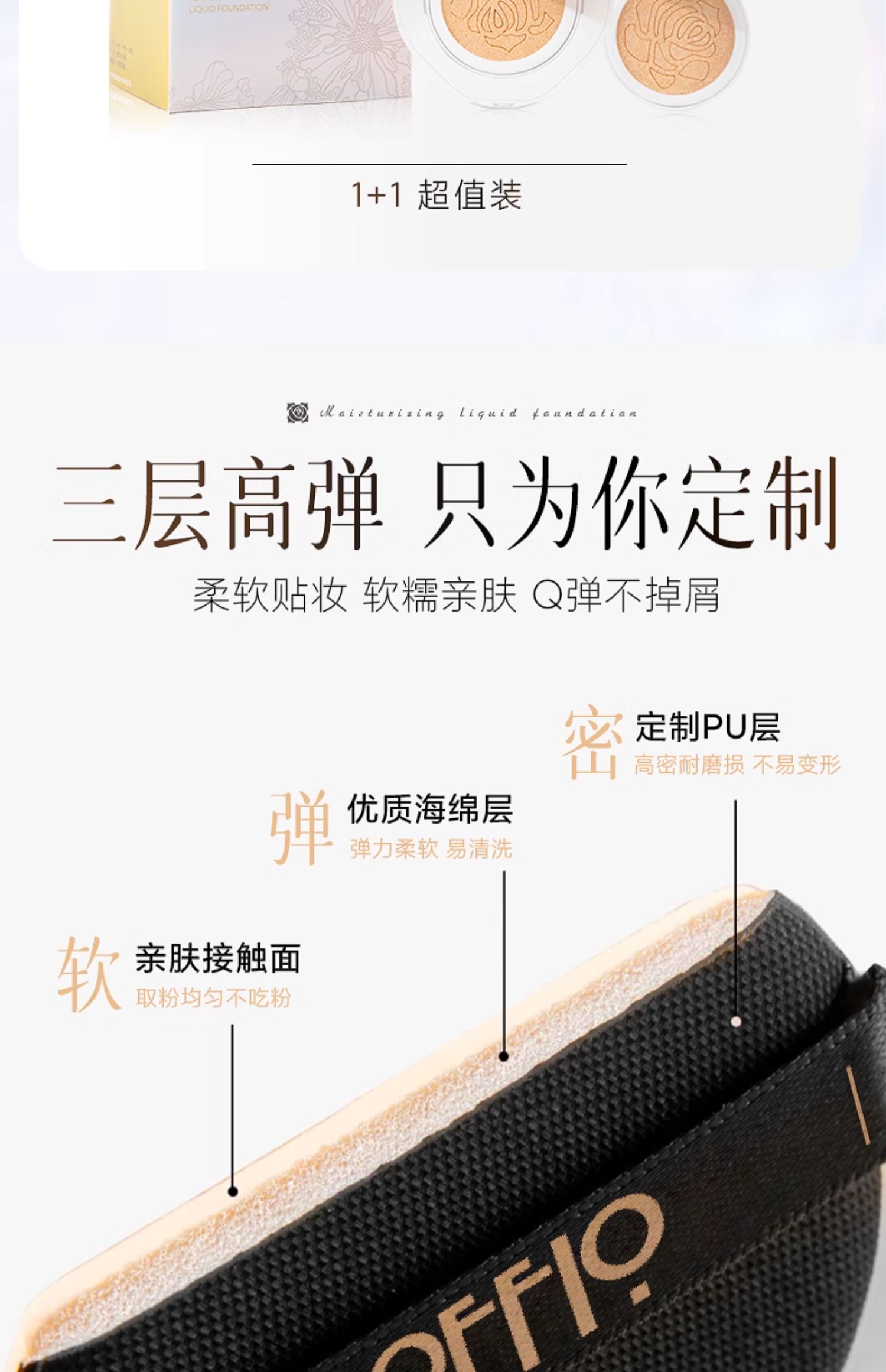 商品名称:SOFFIO/索菲欧水光无瑕气垫粉底液26ml